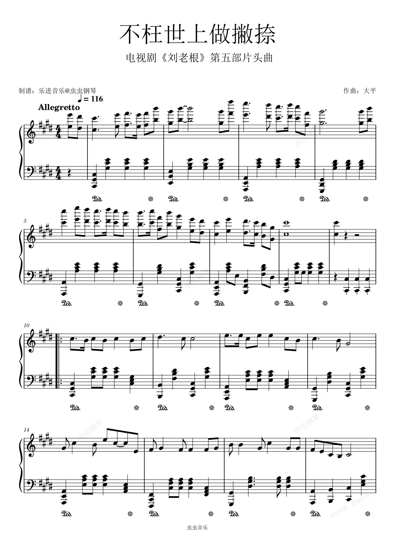 钢琴谱:刘老根5 《不枉世上做撇捺》原调