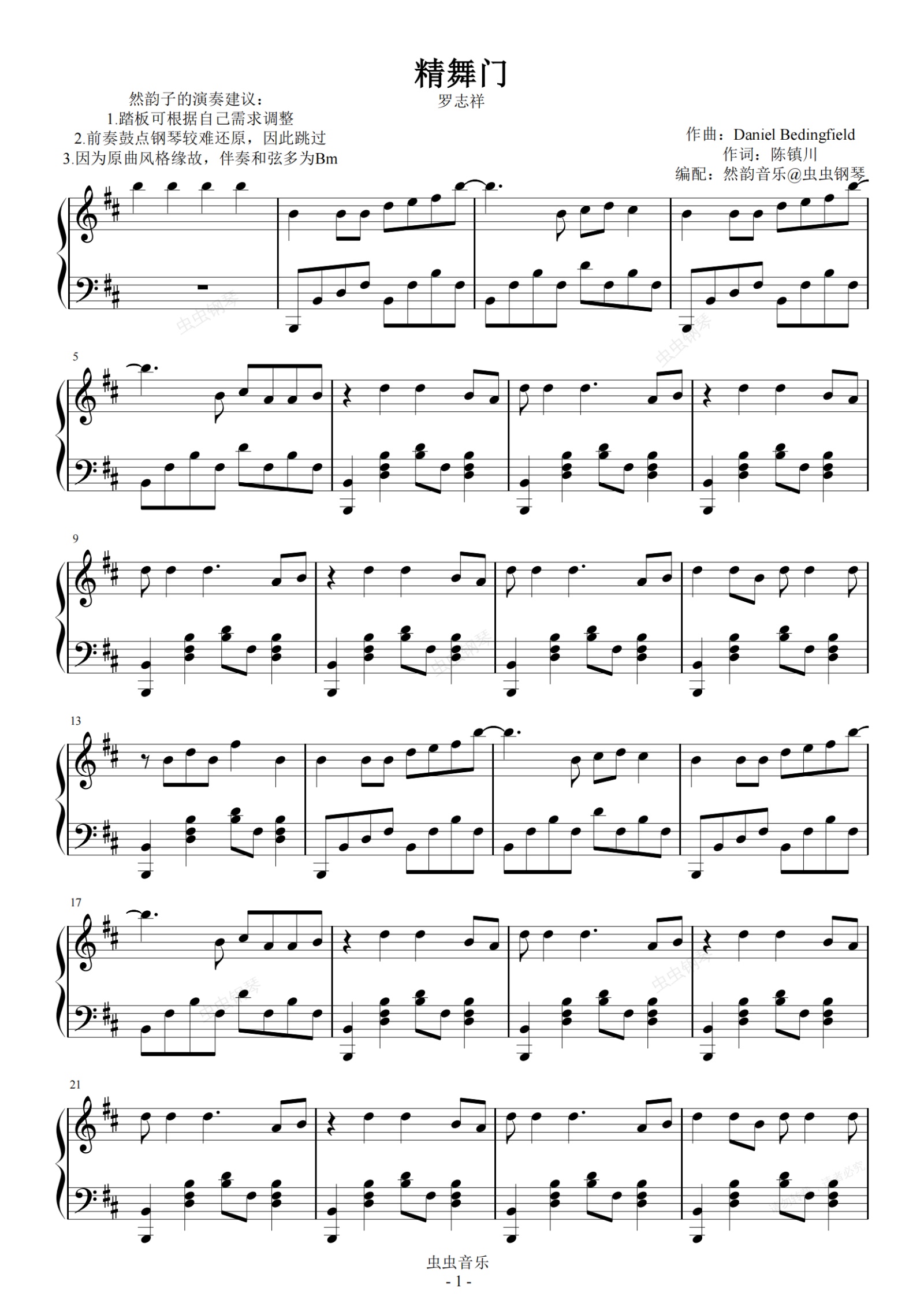 钢琴谱:【原调】精舞门-罗志祥 钢琴高度还原