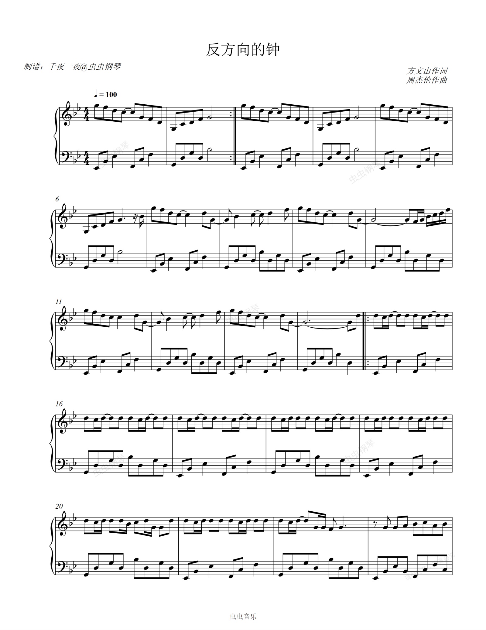 钢琴谱:【钢琴】《反方向的钟》- 周杰伦|“听一千遍反方向的钟,能回到过去吗?”
