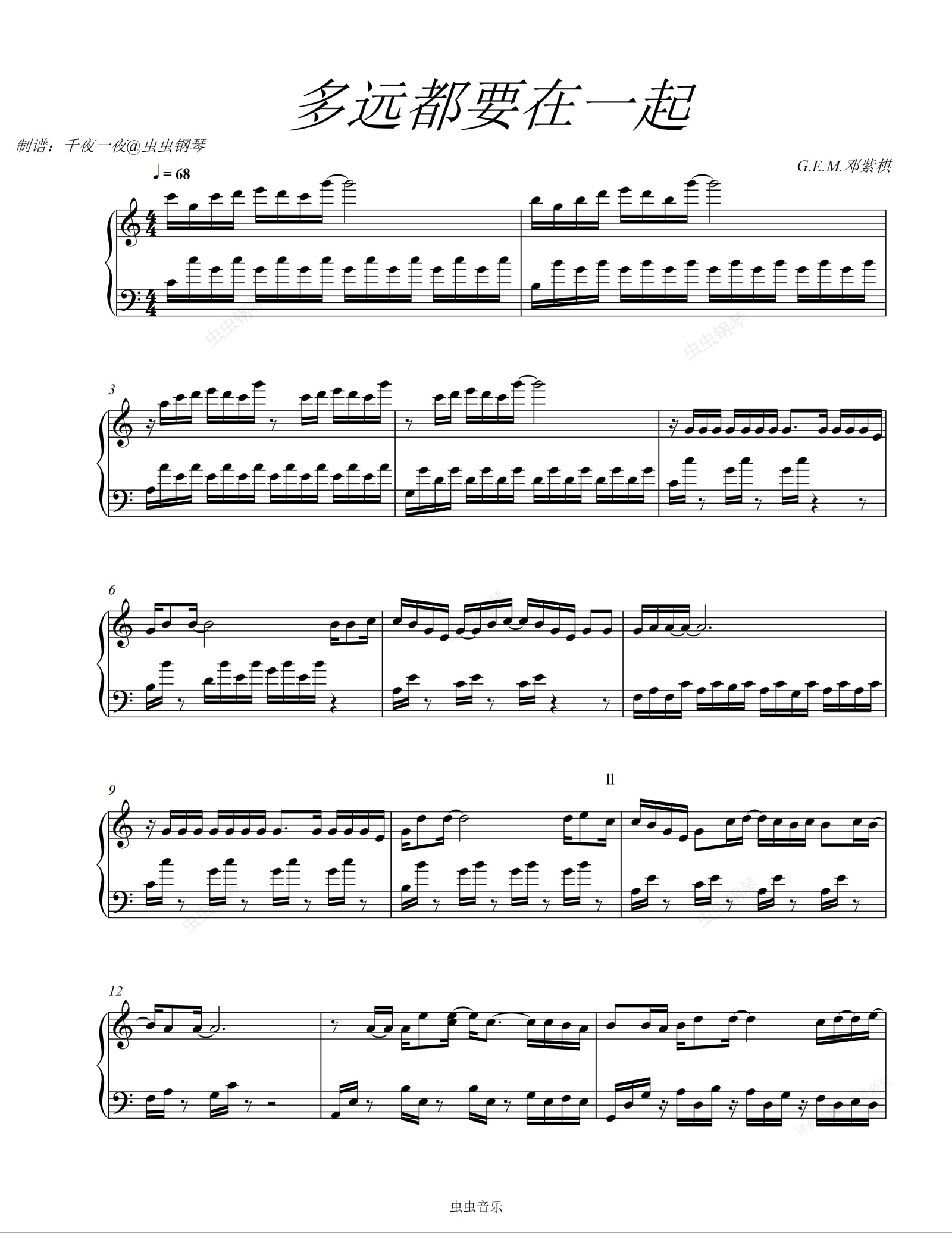 钢琴谱:【钢琴】G.E.M. 邓紫棋-多遠都要在一起 LONG DISTANCE