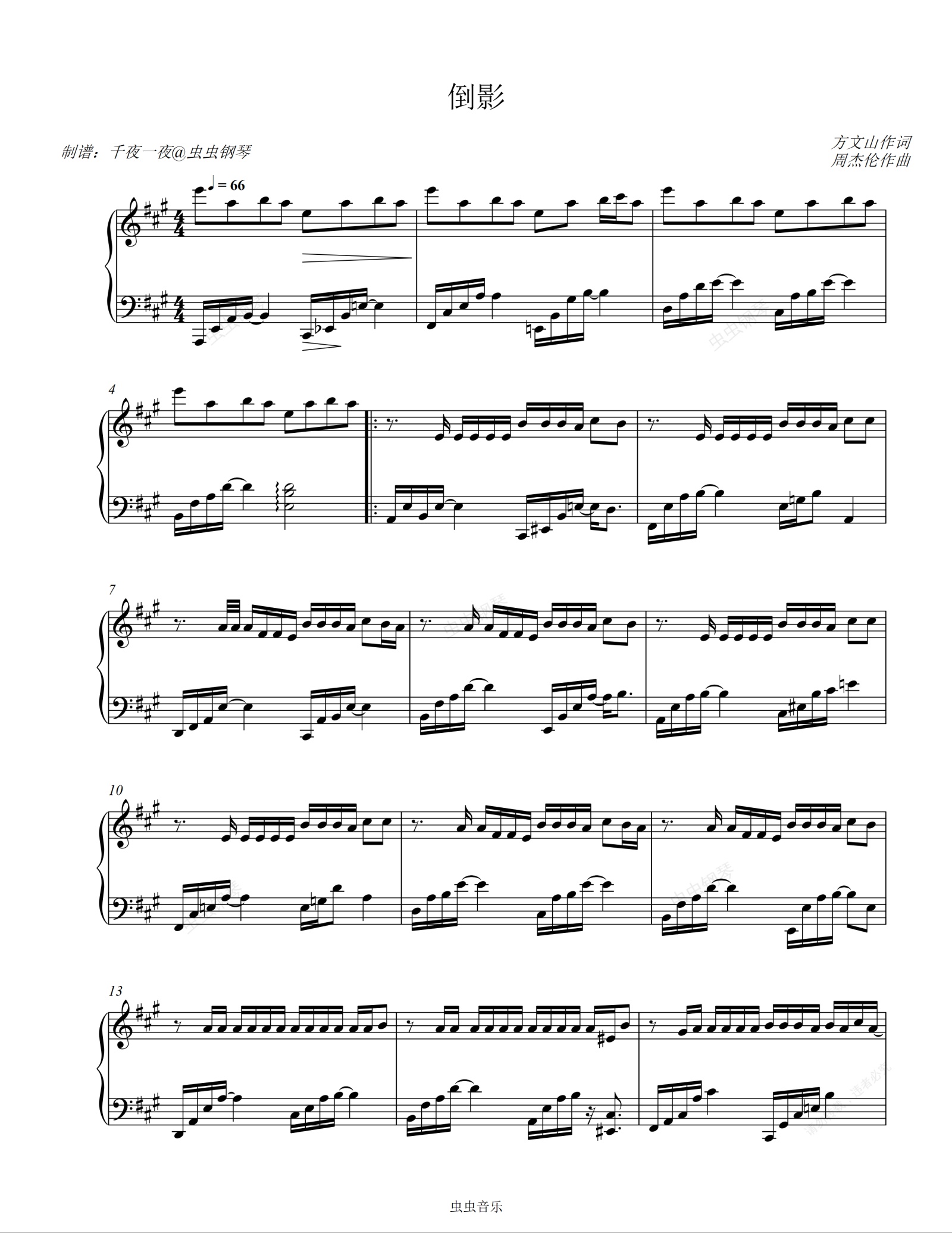 钢琴谱:周杰伦《倒影》钢琴版|“你的倒影是我带不走的风景”