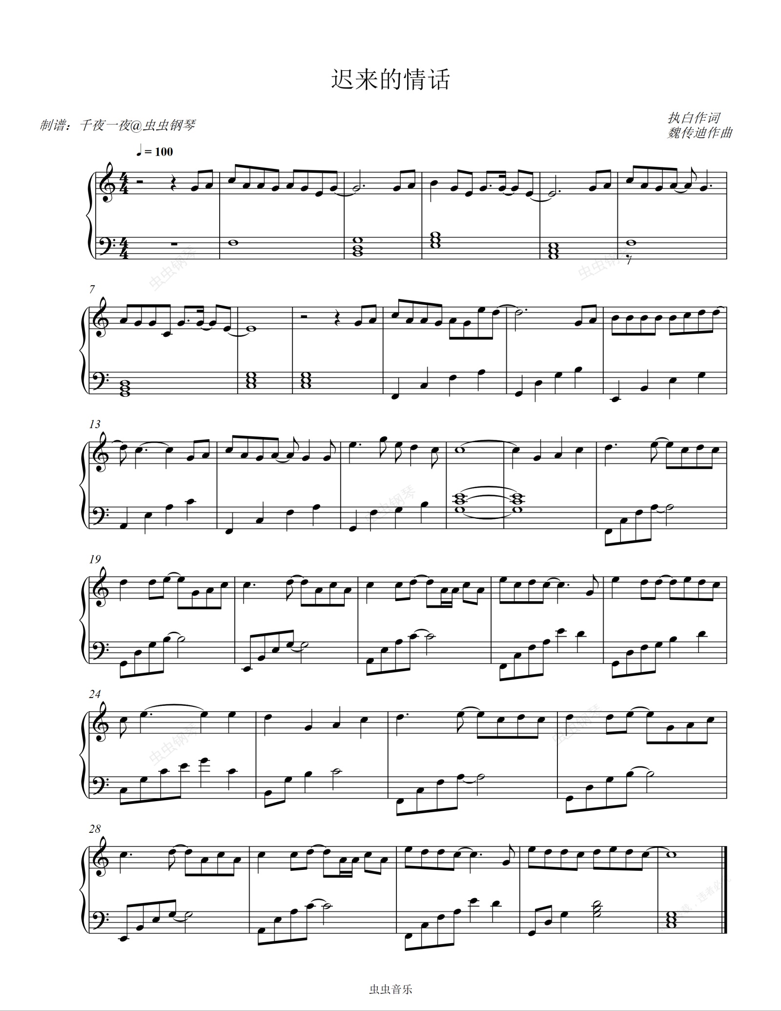 钢琴谱:张家旺《迟来的情话》 钢琴版