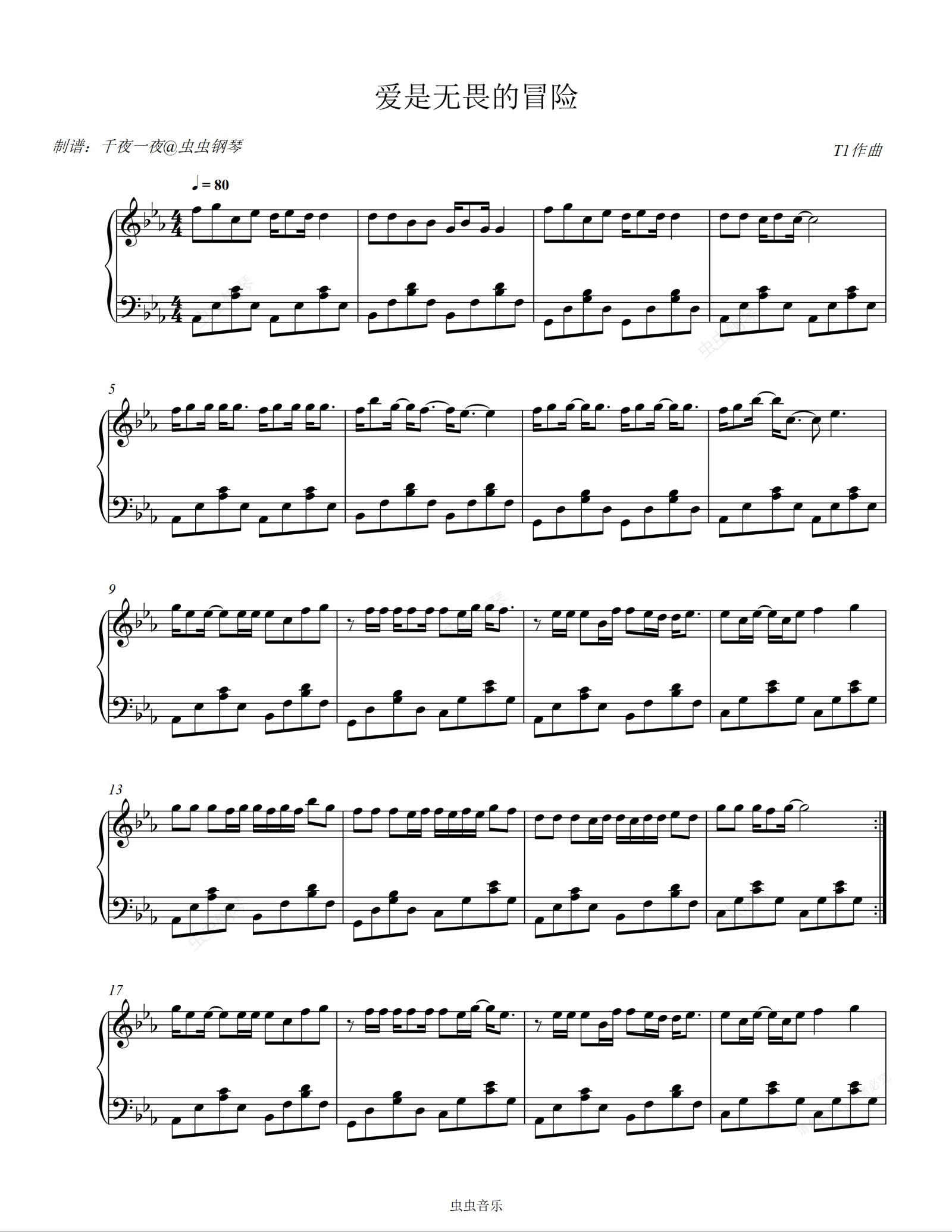 钢琴谱:最近超火的《爱是无畏的冒险》,节奏太上头了,为爱勇敢一次吧