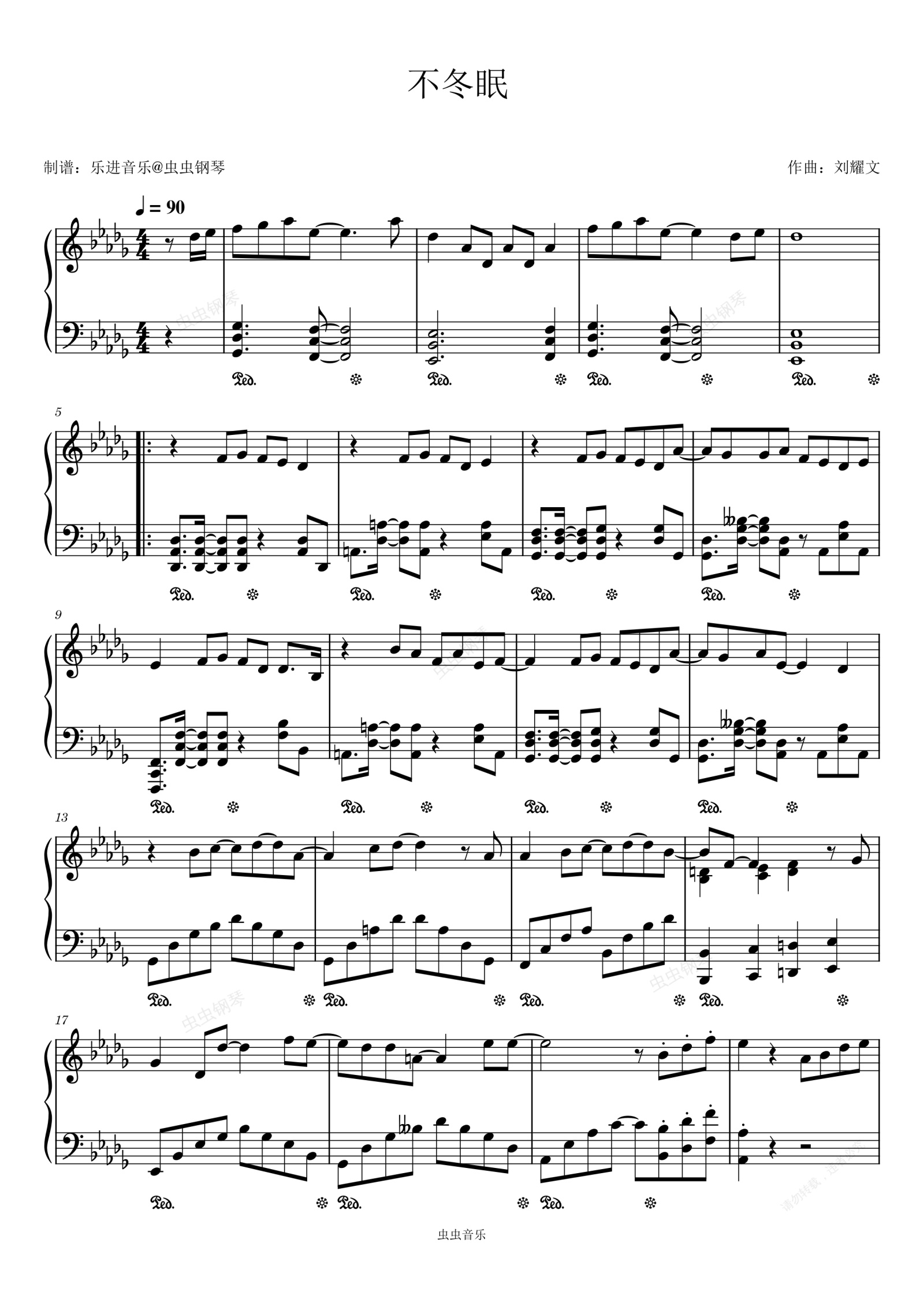 钢琴谱:《不冬眠》原调