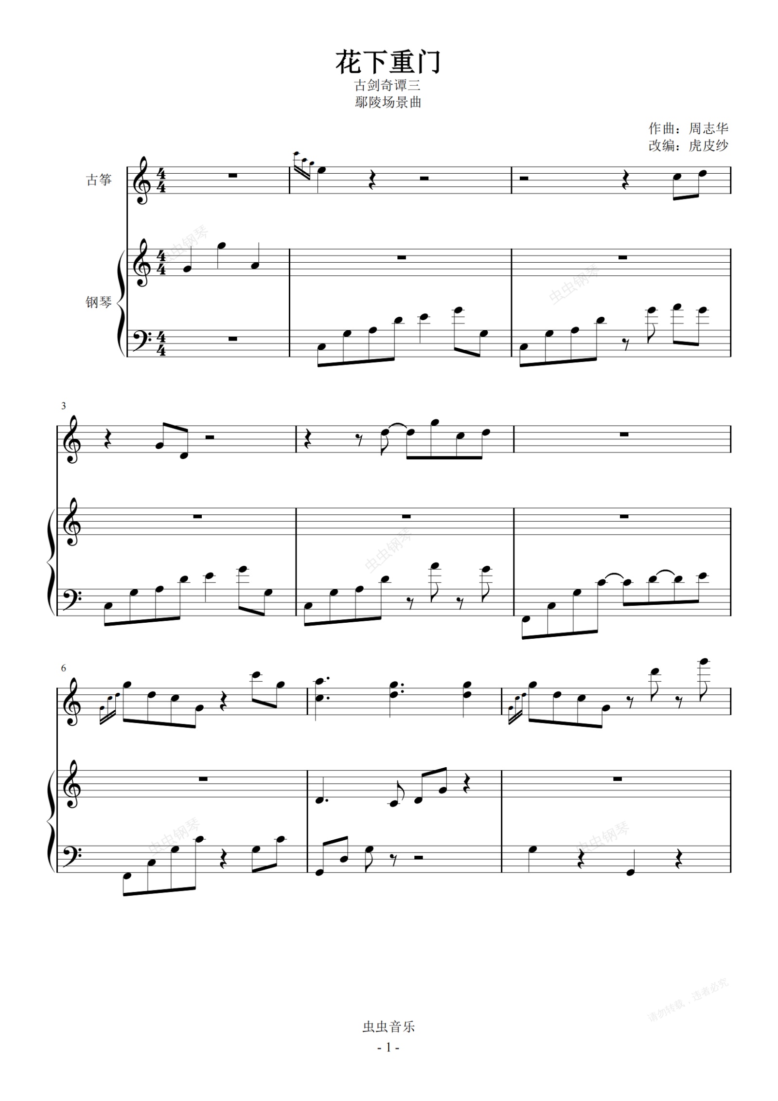 钢琴谱:古剑奇谭三 花下重门 鄢陵场景曲 合奏谱