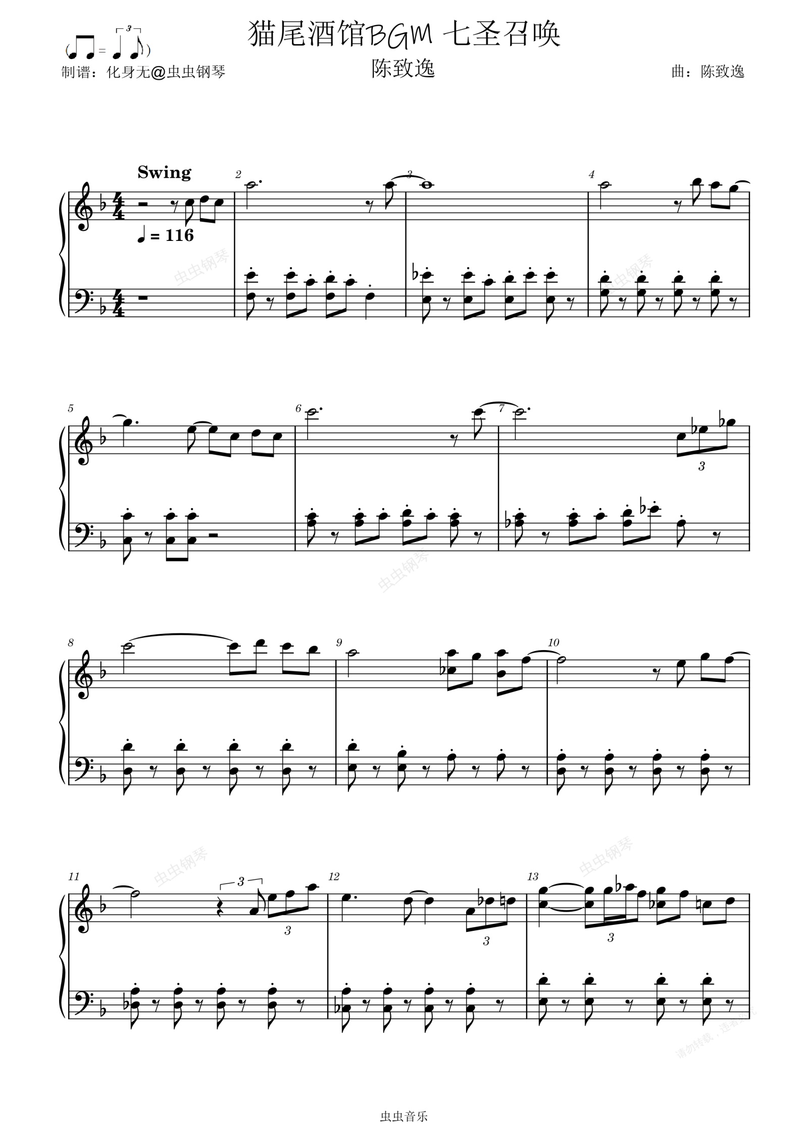 钢琴谱:猫尾酒馆BGM 七圣召唤