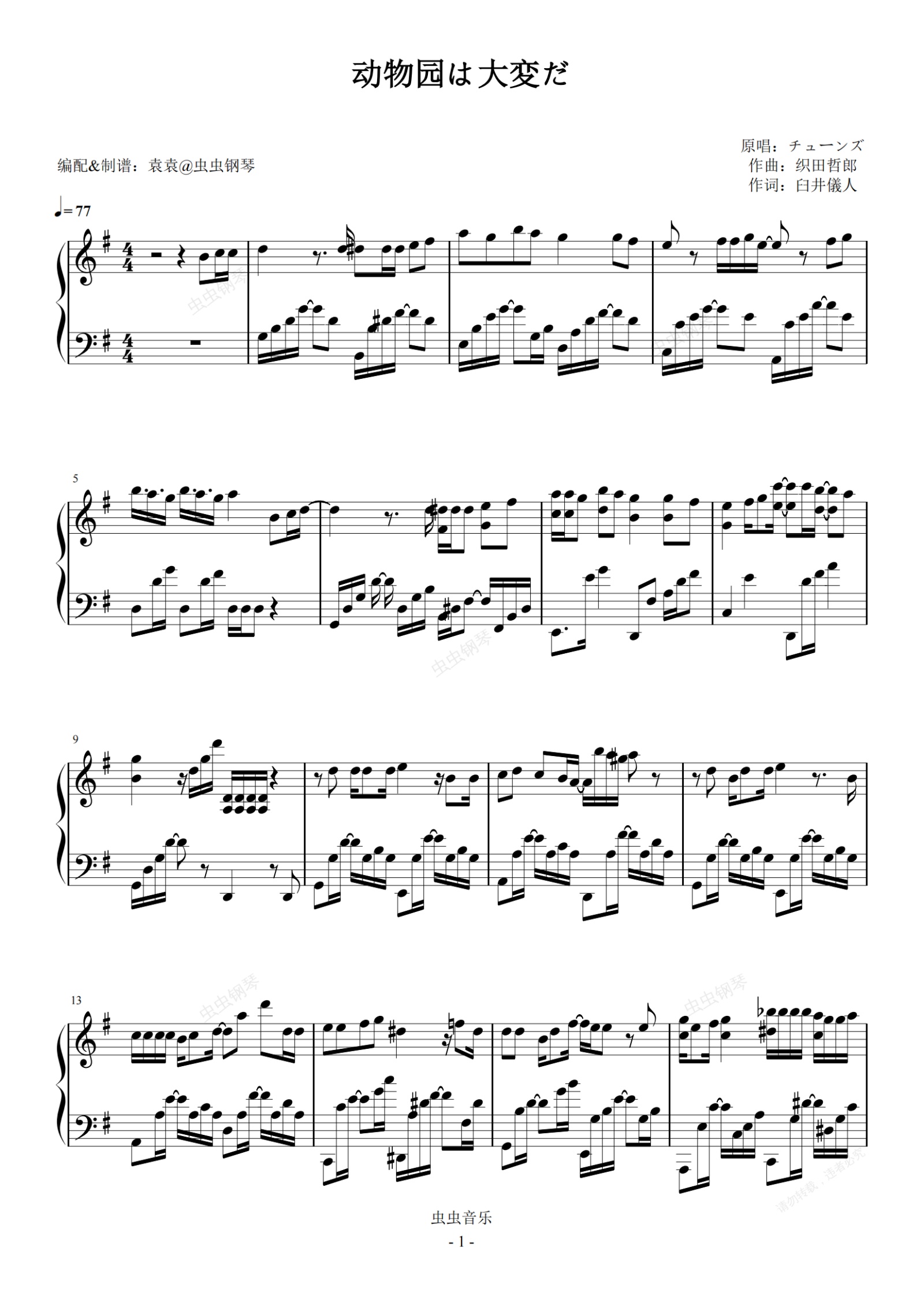 钢琴谱:蜡笔小新OP 动物园は大変だ 抒情简易演奏版 原调