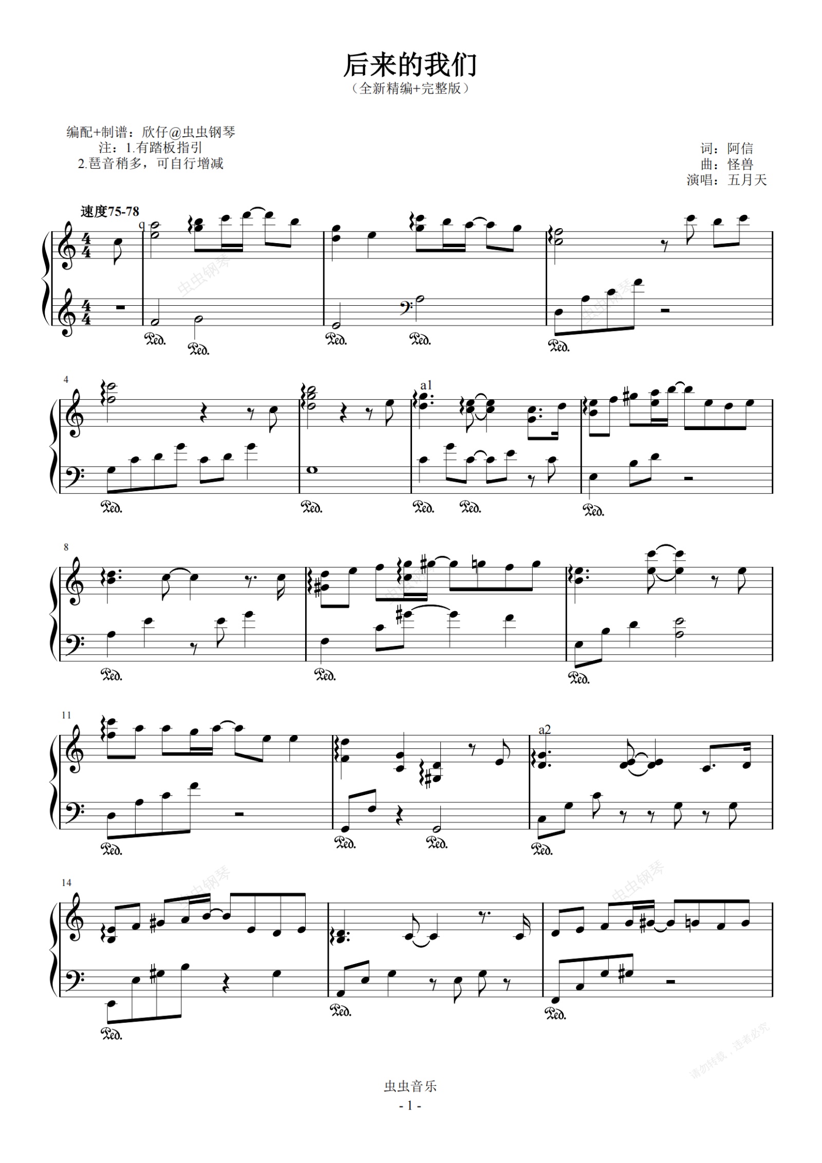 钢琴谱:五月天-C《后来的我们》(全新精编+完整版)