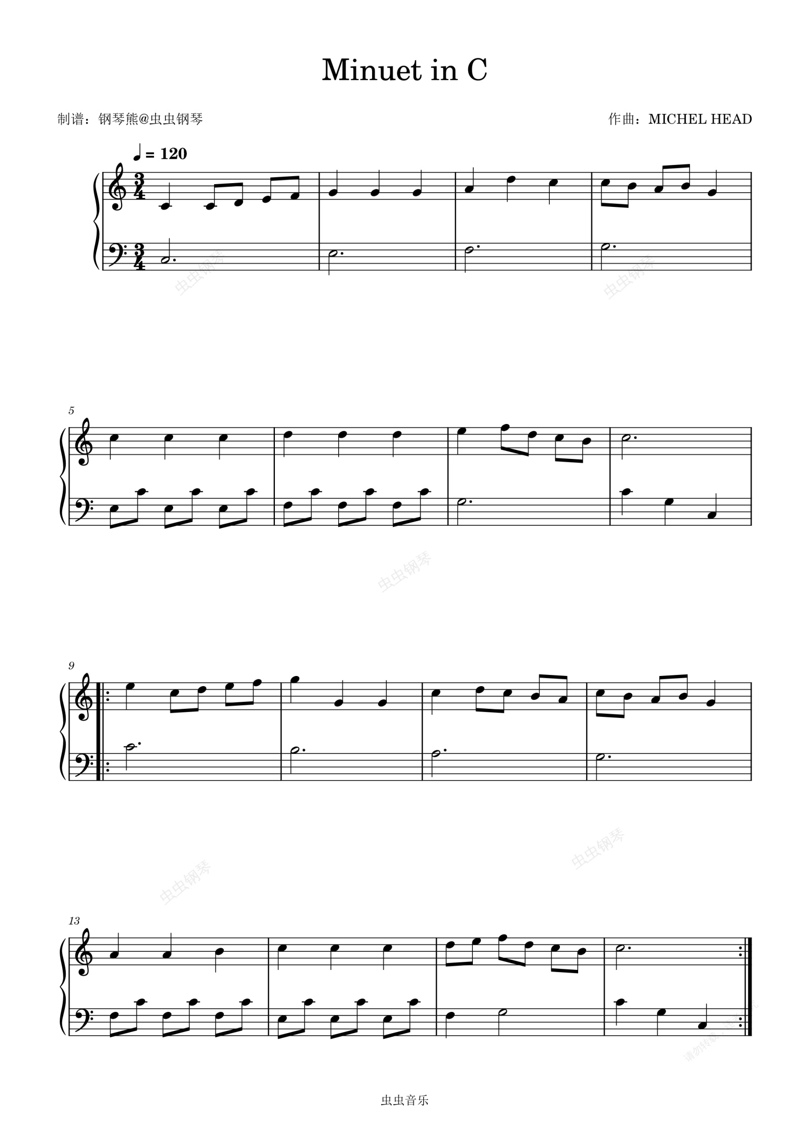 钢琴谱:英皇考级1级曲目《Minuet in C》