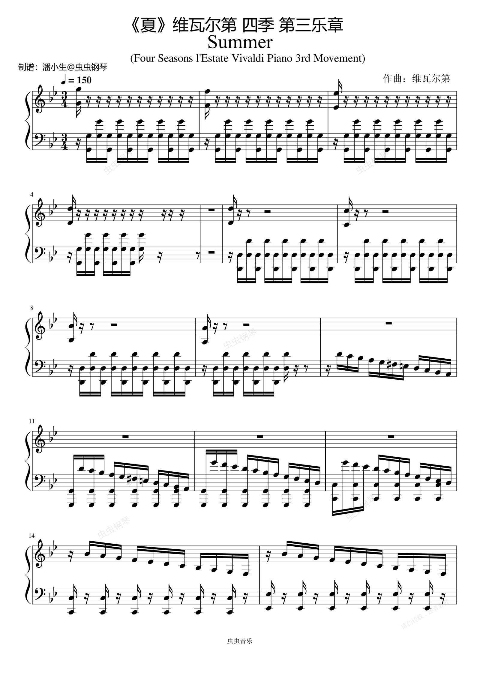 钢琴谱:《夏》维瓦尔第 四季 第三乐章 原版重制 Vivaldi Summer The Four Seasons RV 315