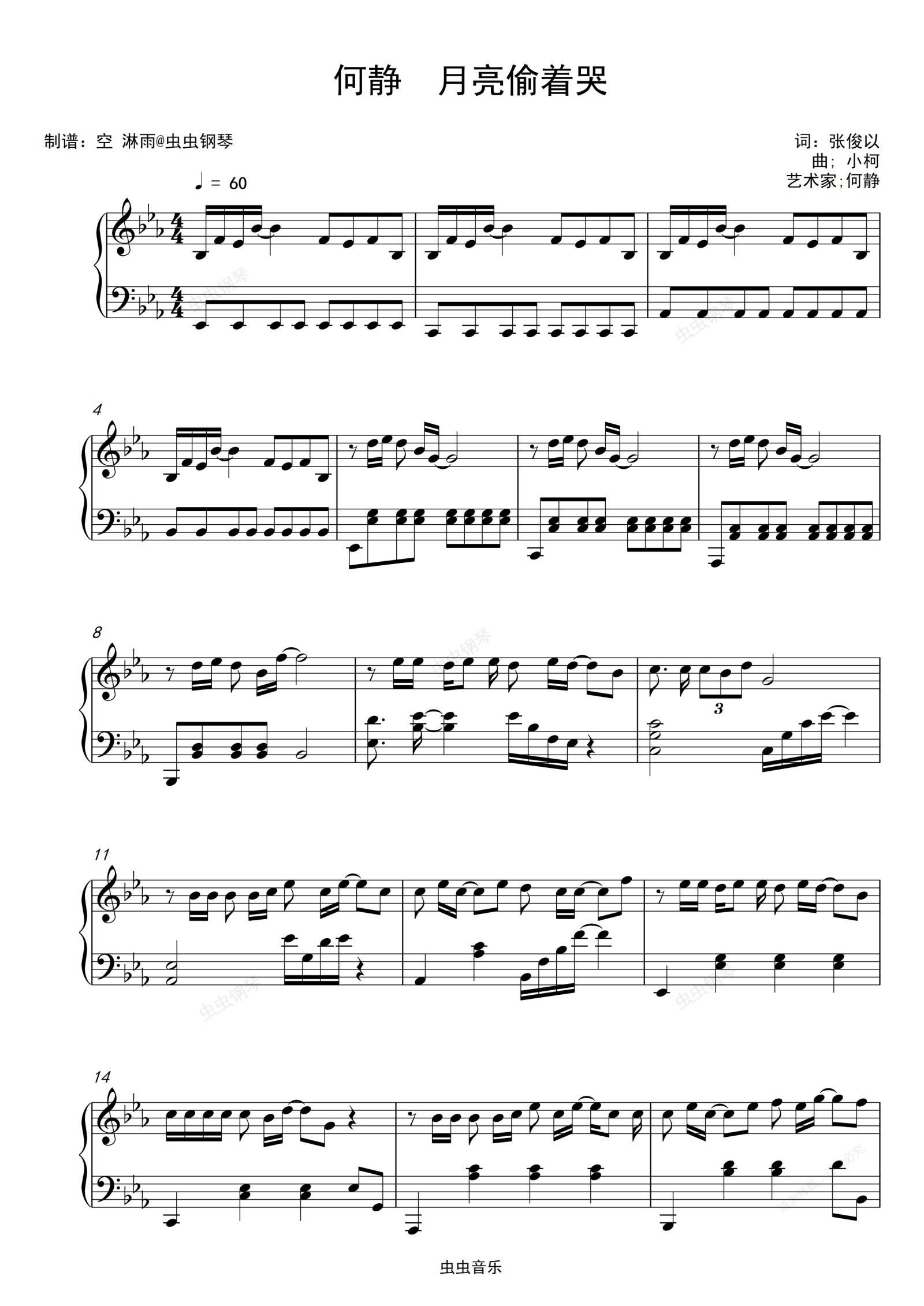 钢琴谱:何静 月亮偷着哭