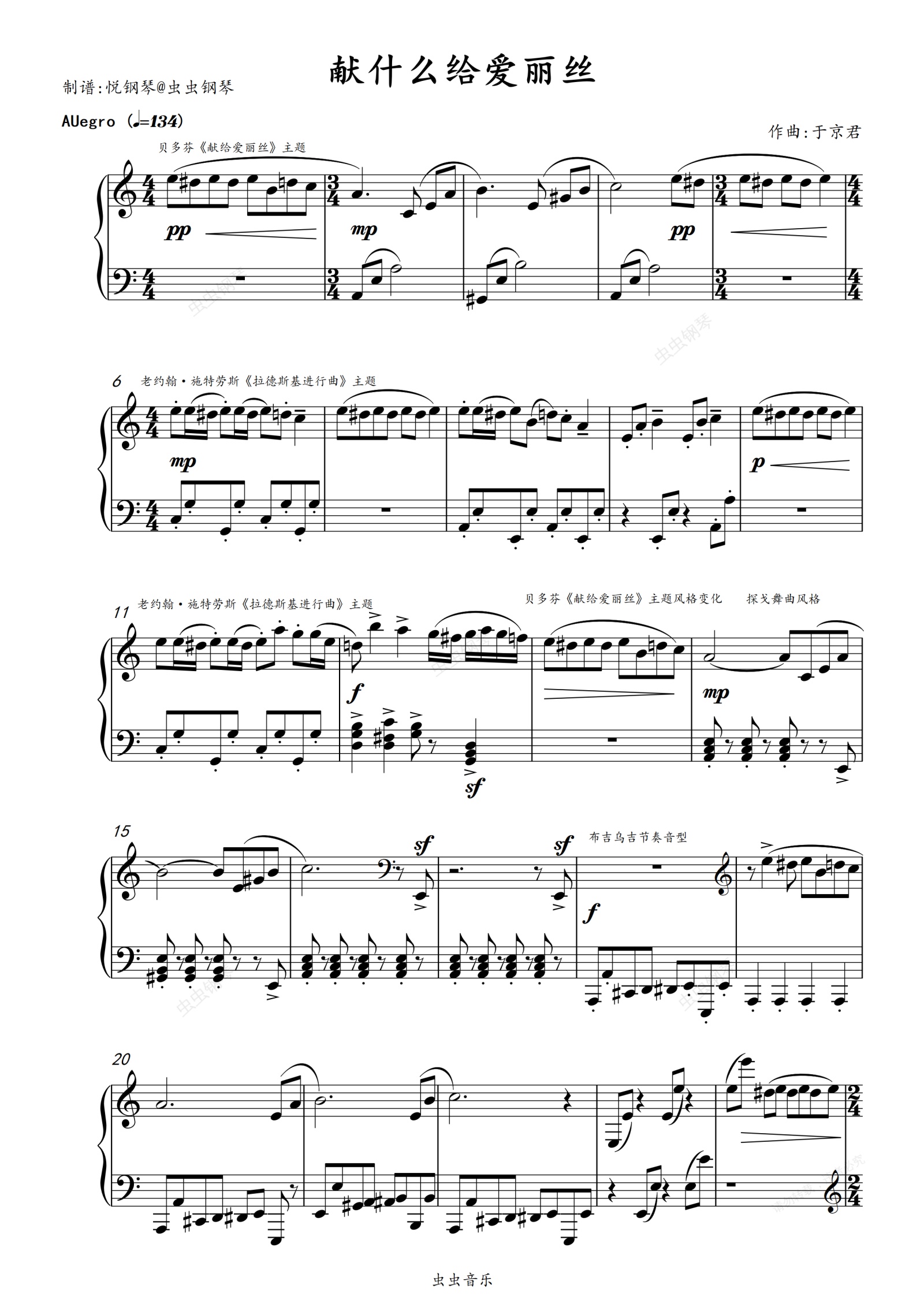 钢琴谱:献什么给爱丽丝【幽默、风趣、诙谐的钢琴小曲】