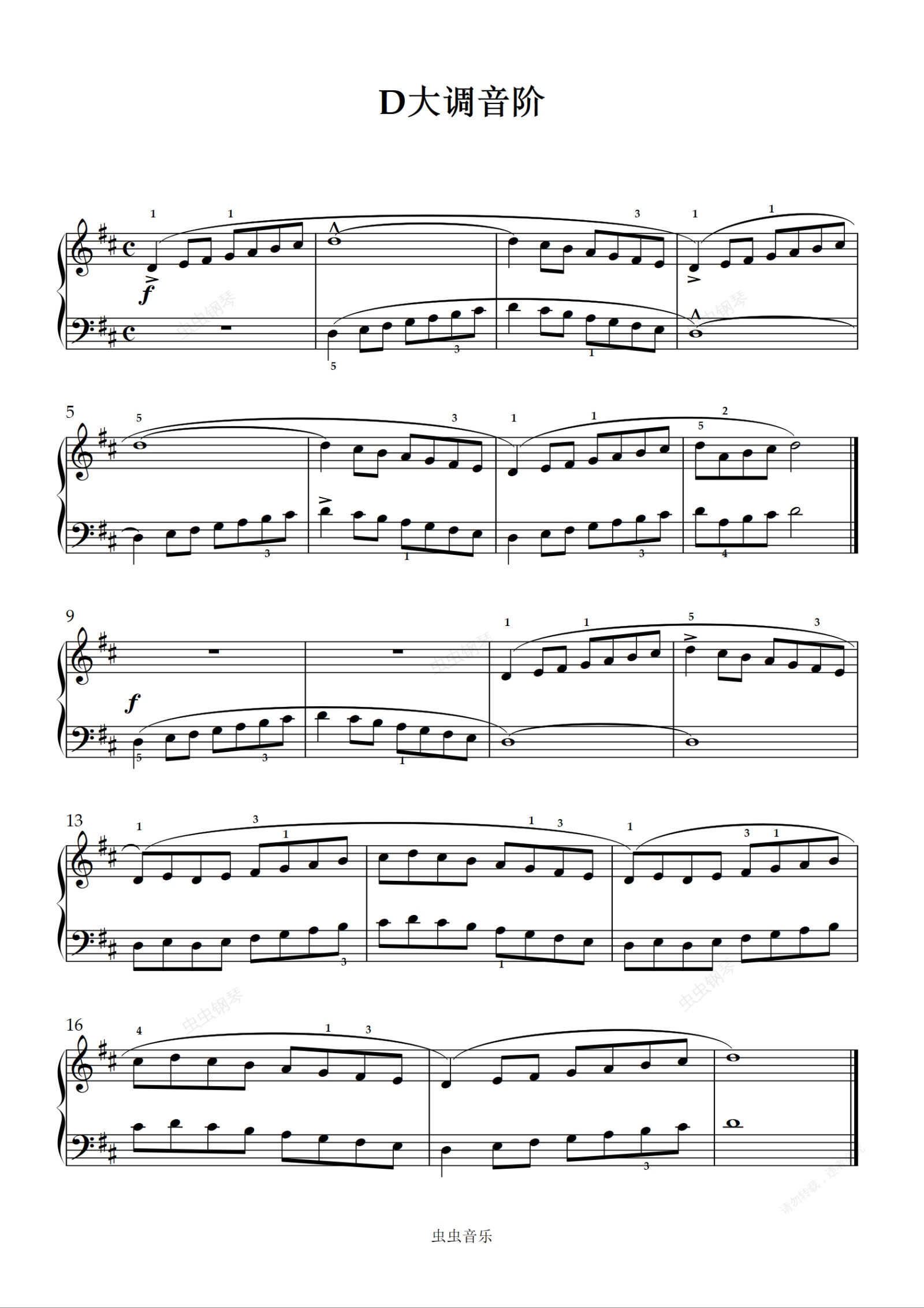 钢琴谱:拜厄 No.75 D大调音阶