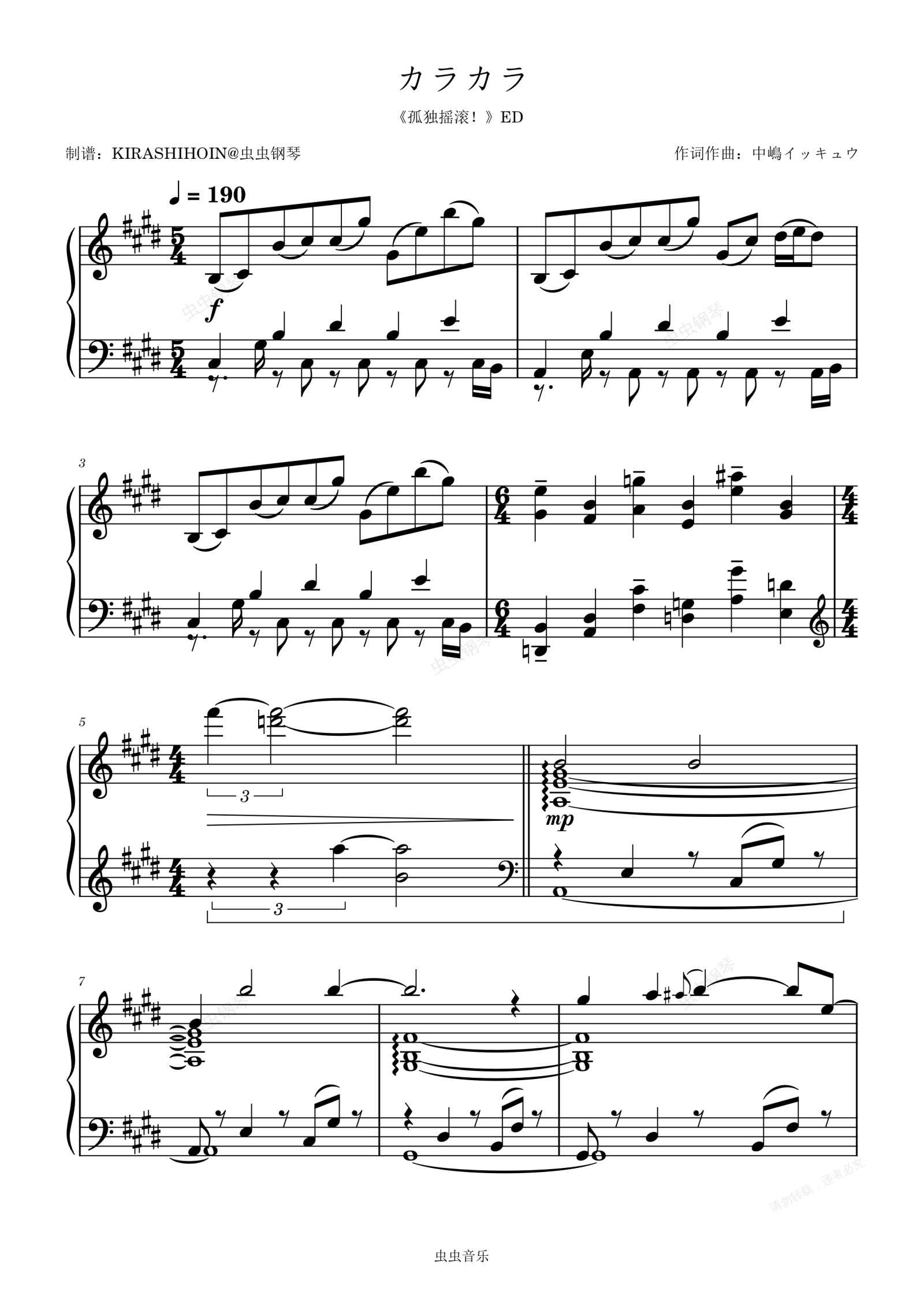 钢琴谱:カラカラ(《孤独摇滚!》ED/片尾曲)- 結束バンド