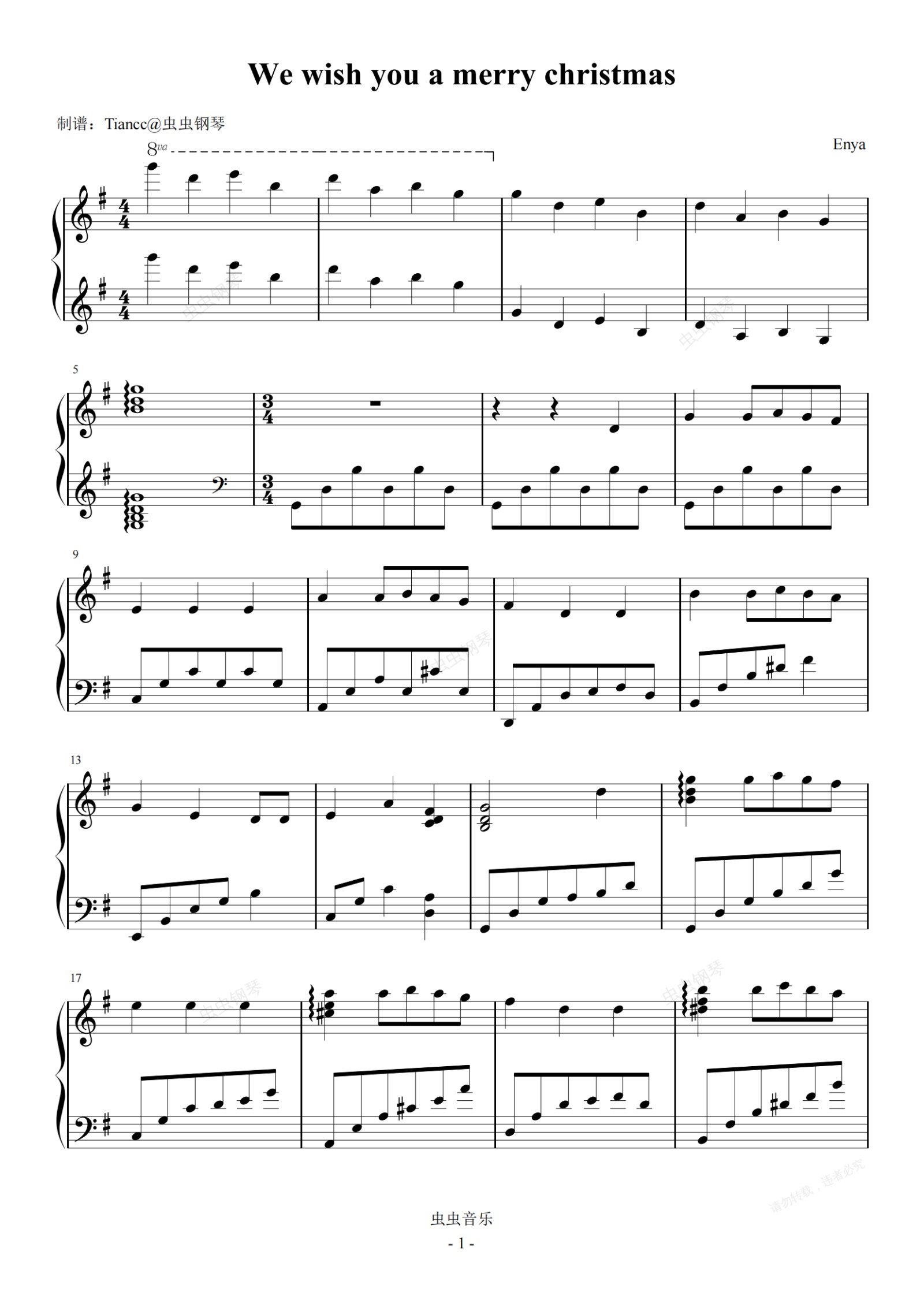 钢琴谱:《圣诞快乐(We wish you a merry christmas)》简单,教小朋友~