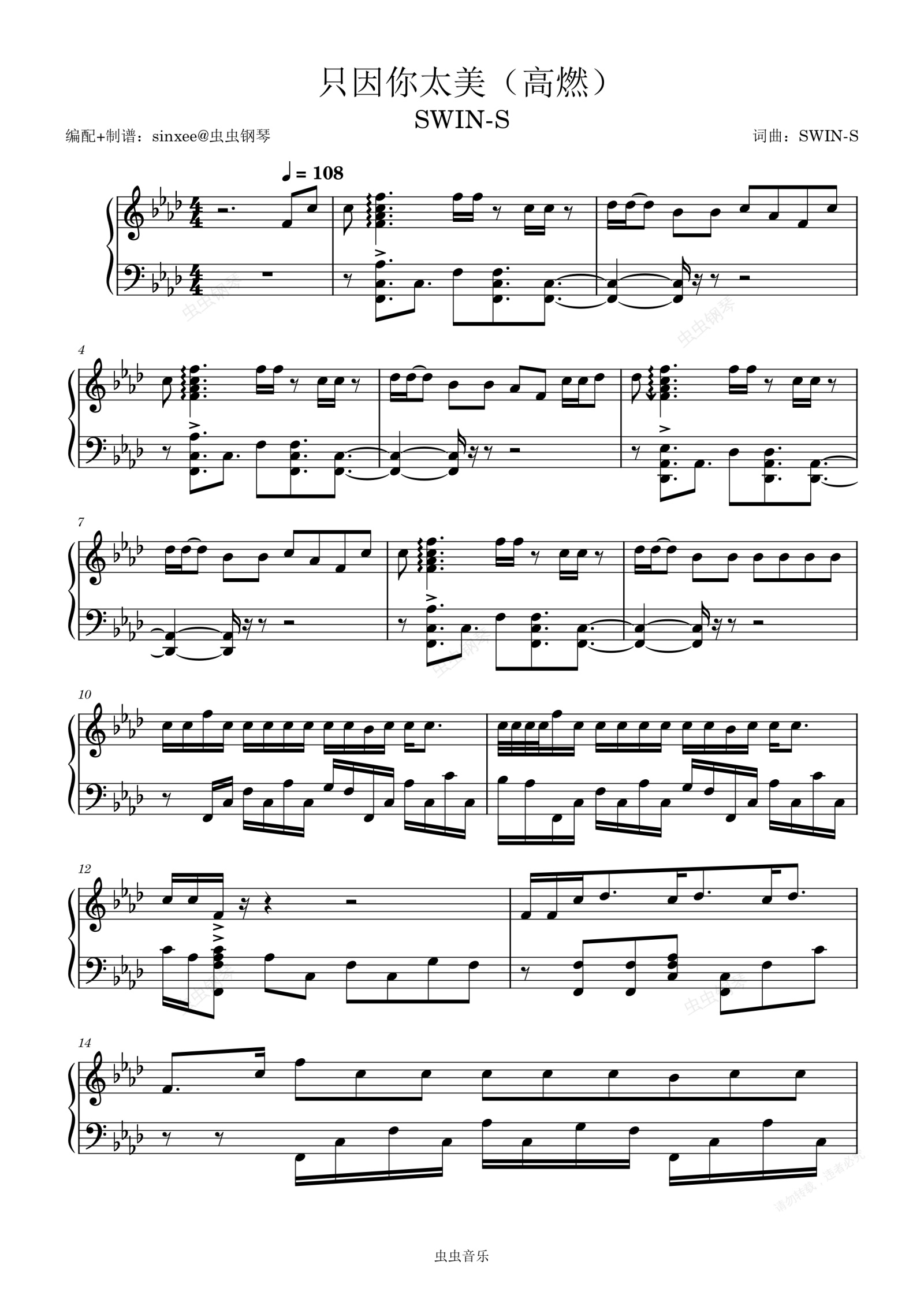 钢琴谱:SWIN-S《只因你太美》(高燃炸裂版)