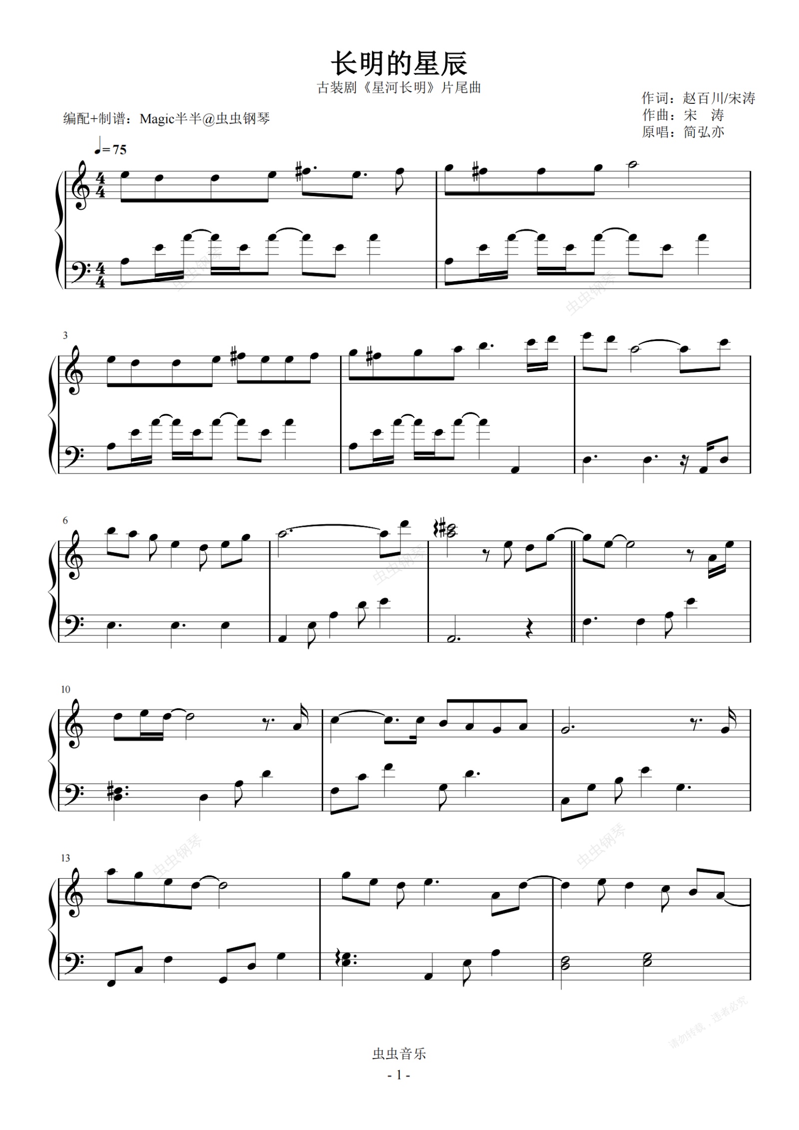 钢琴谱:长明的星辰 <星河长明>片尾曲(C调)