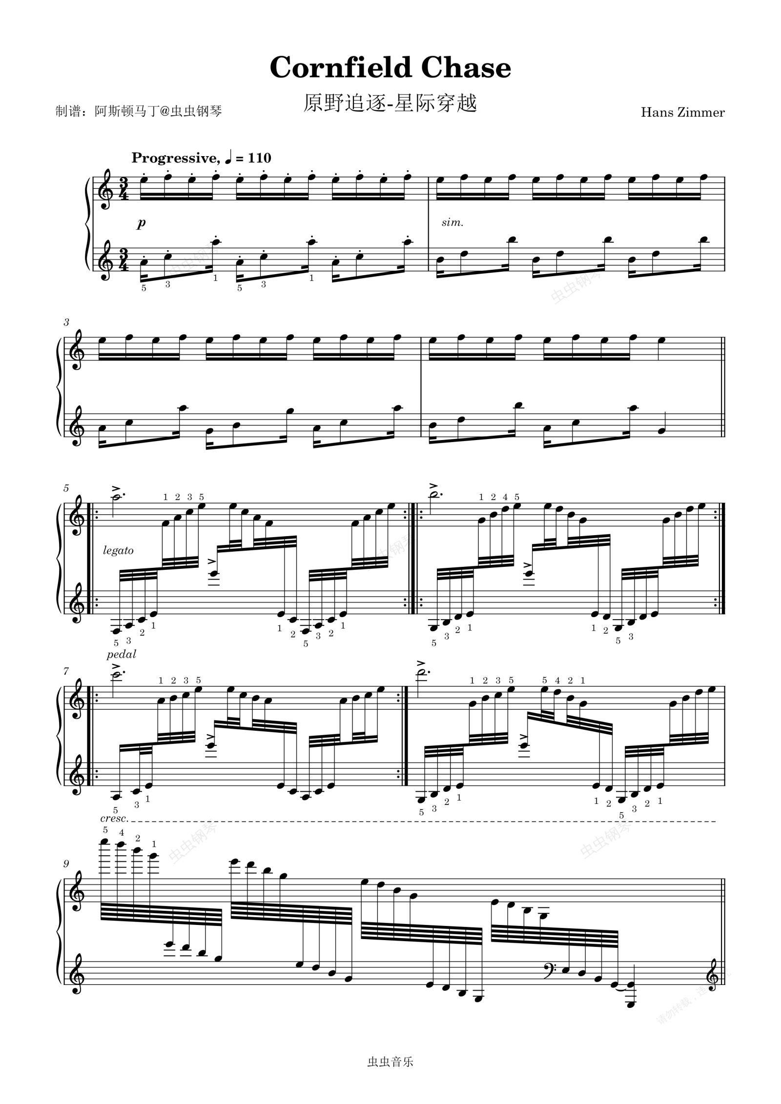 钢琴谱:【Cornfield Chase】原野追逐-星际穿越