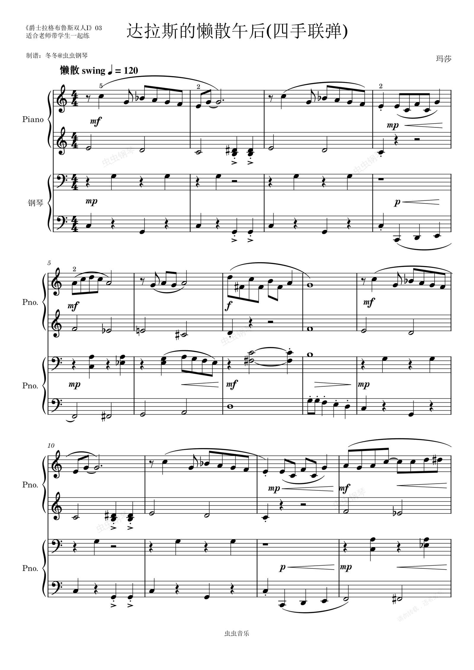 钢琴谱:达拉斯的懒散午后(四手联弹)