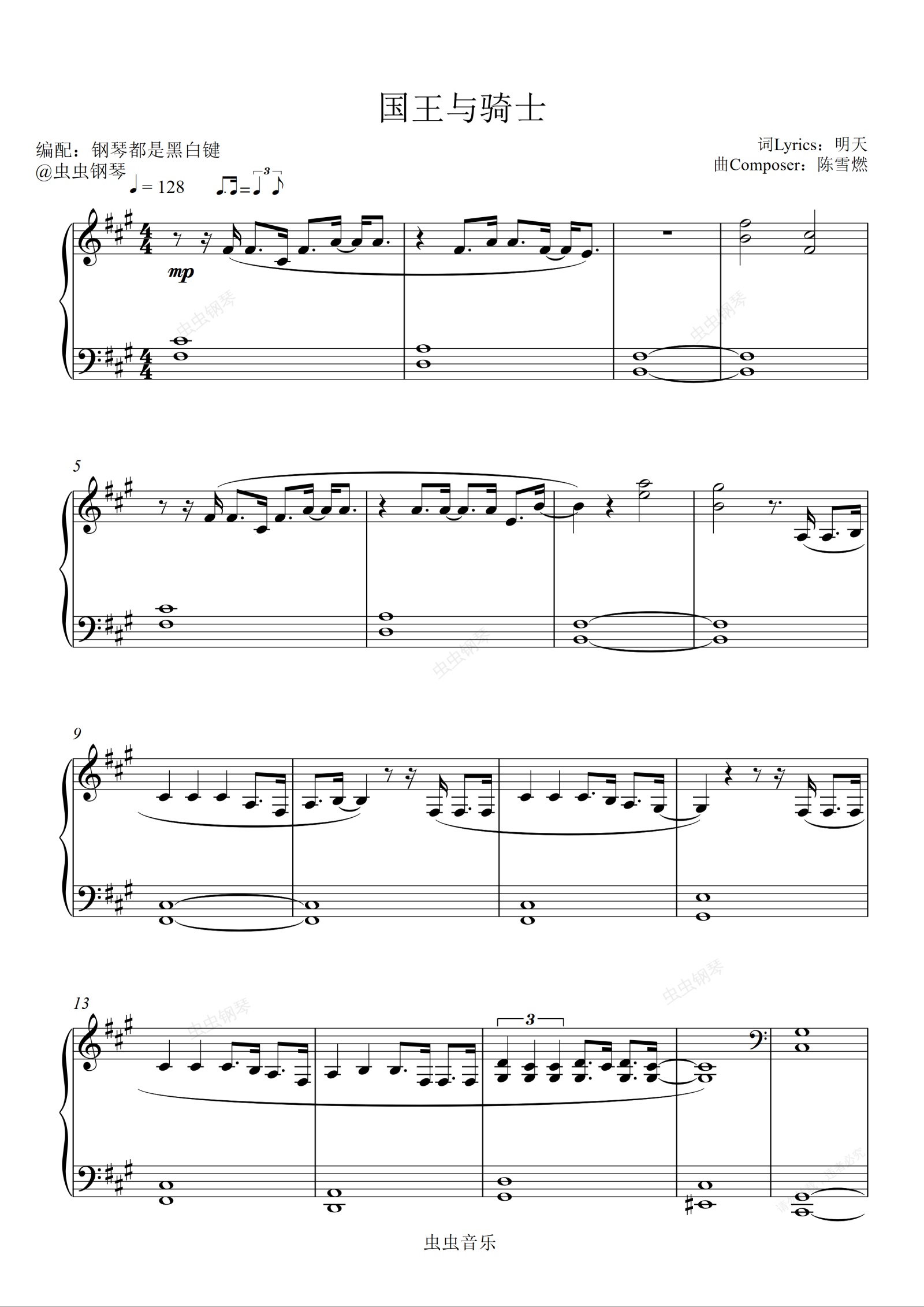 钢琴谱:国王与骑士 - 陈雪燃 钢琴抒情版【点燃我,温暖你 OST】片头曲