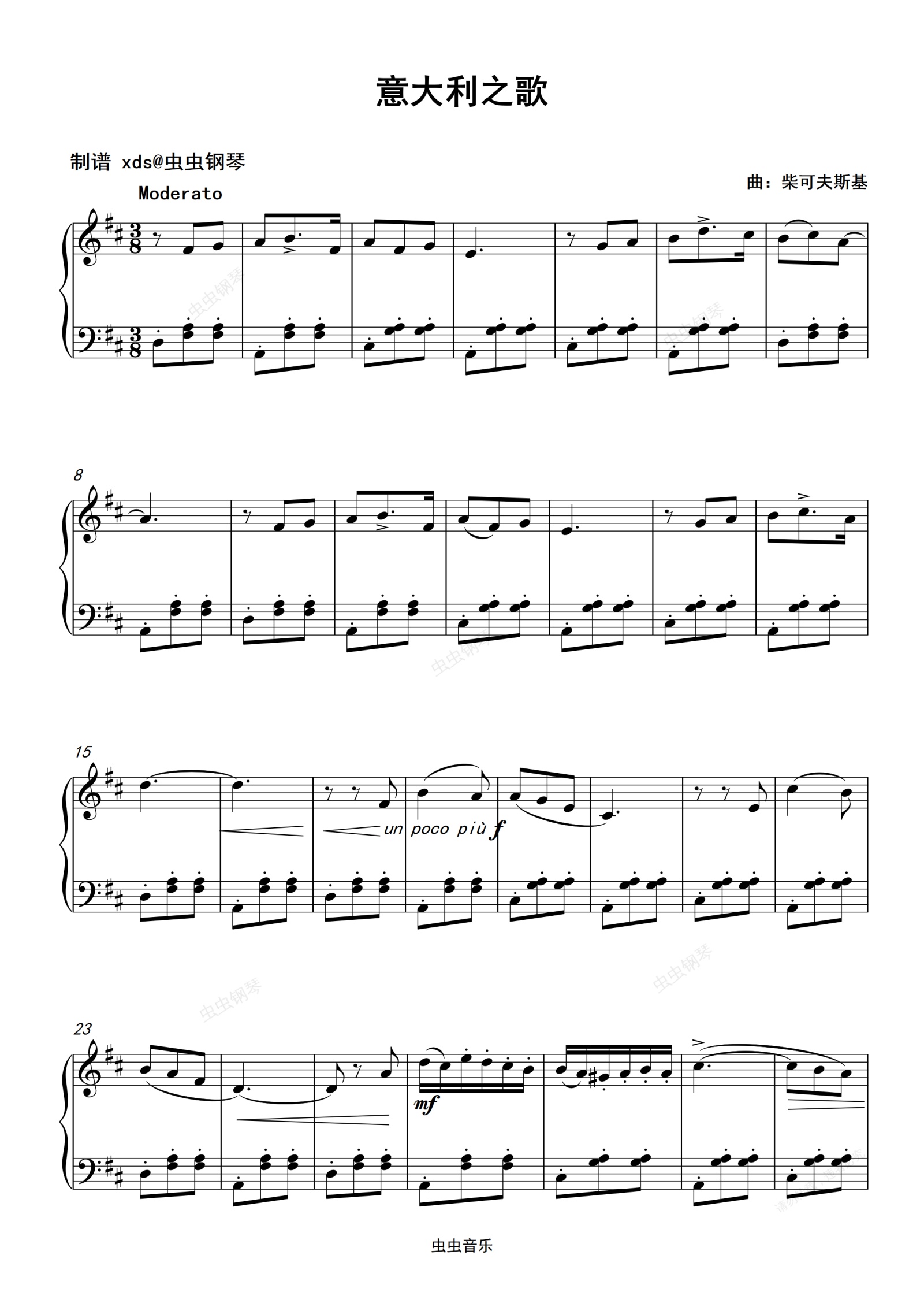 钢琴谱:意大利之歌