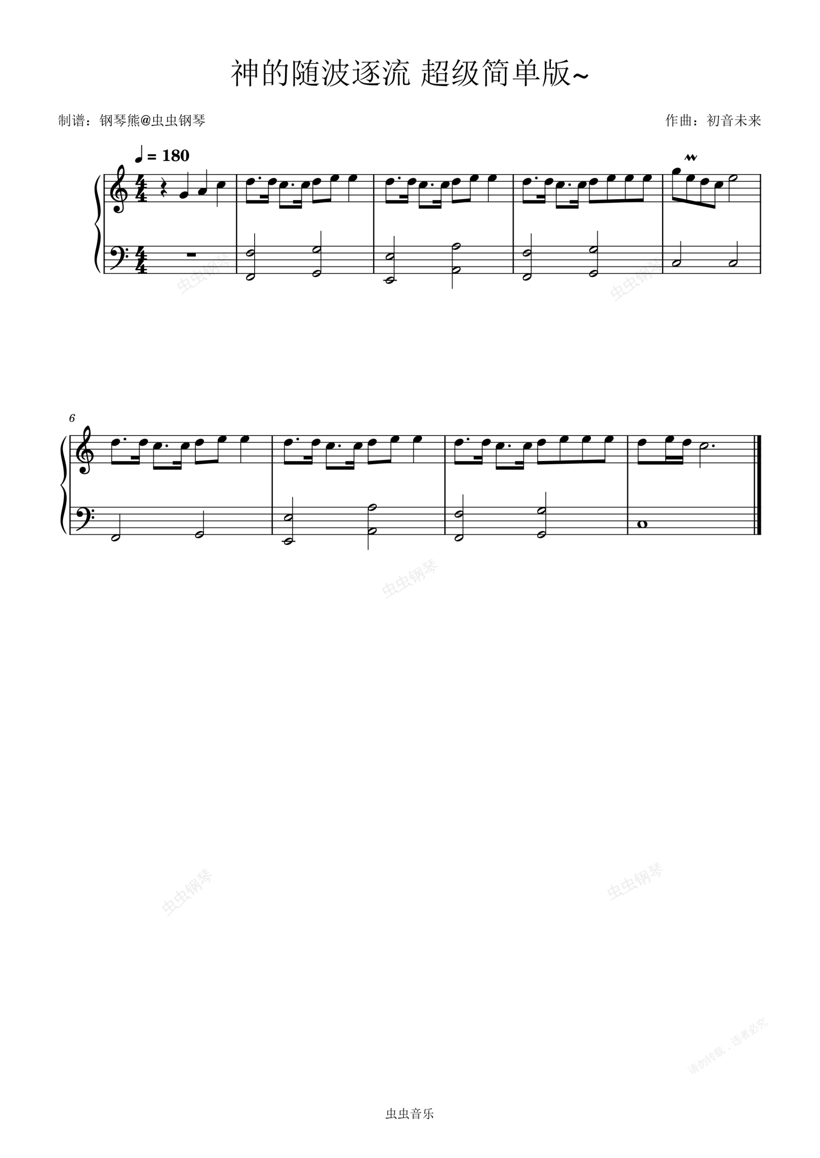 钢琴谱:初学者版~《神的随波逐流》