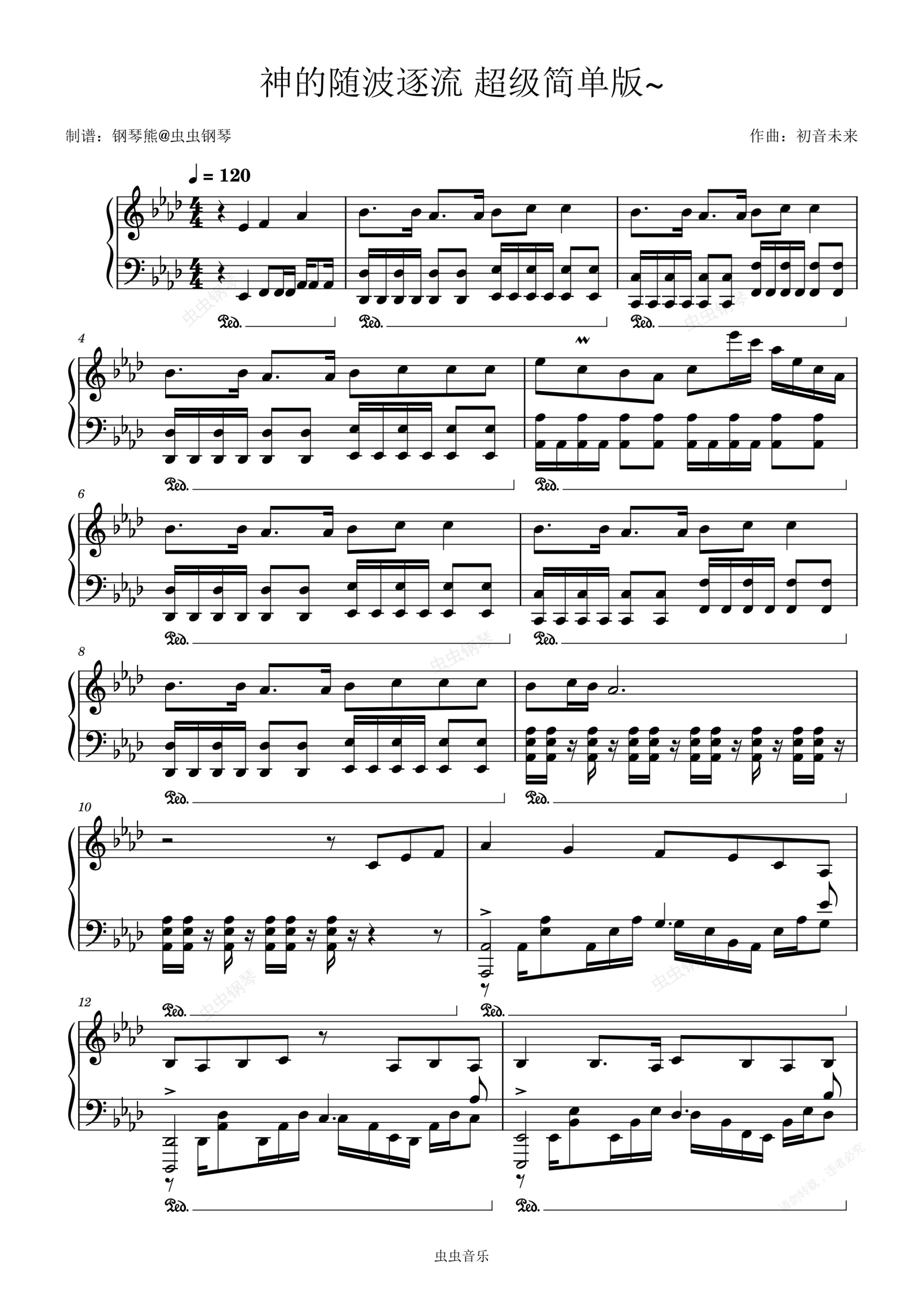 钢琴谱:《神的随波逐流》极致还原版~