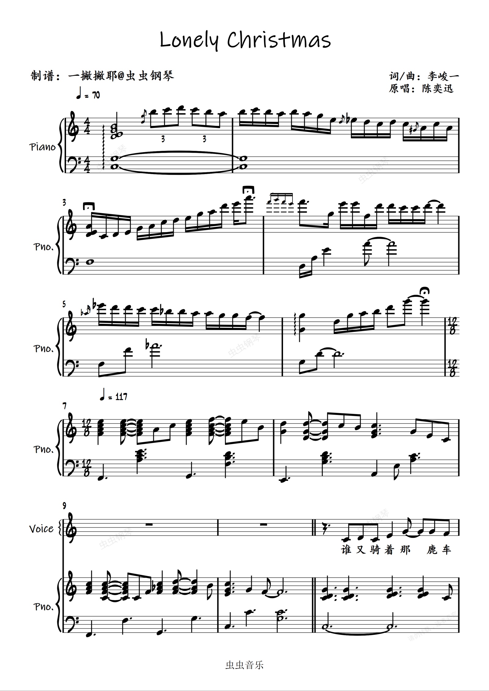 钢琴谱:全网最还原弹唱《Lonely Christmas》陈奕迅「一撇撇耶」