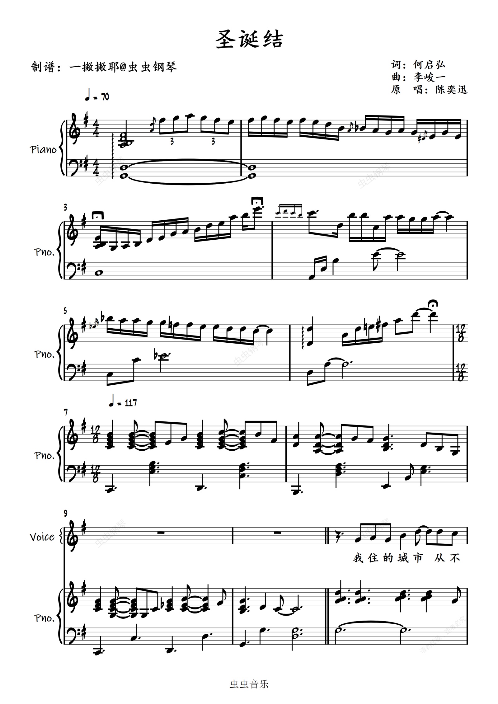 钢琴谱:升调女版弹唱《圣诞结》陈奕迅「一撇撇耶」
