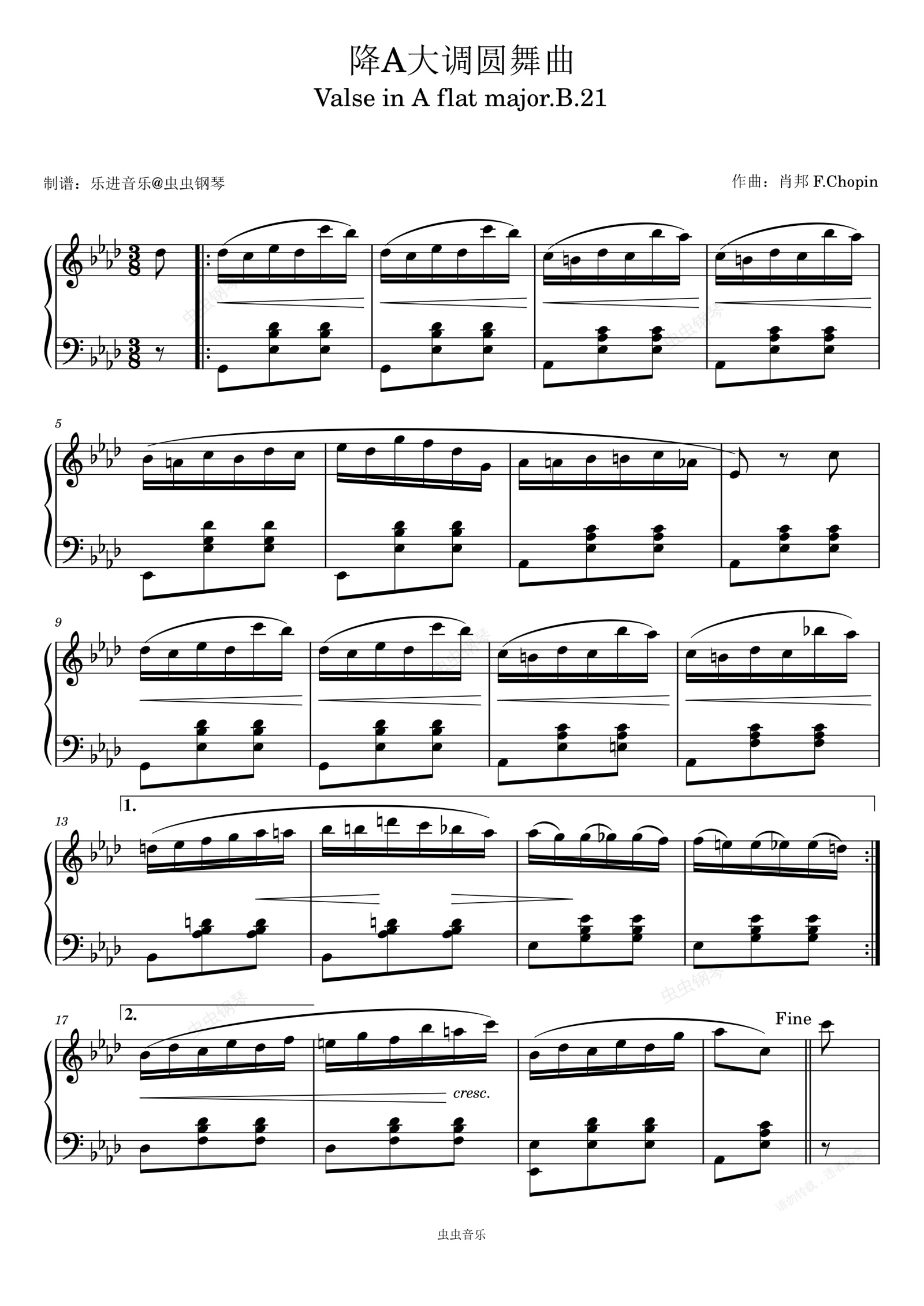 钢琴谱:肖邦圆舞曲 降A大调B.21