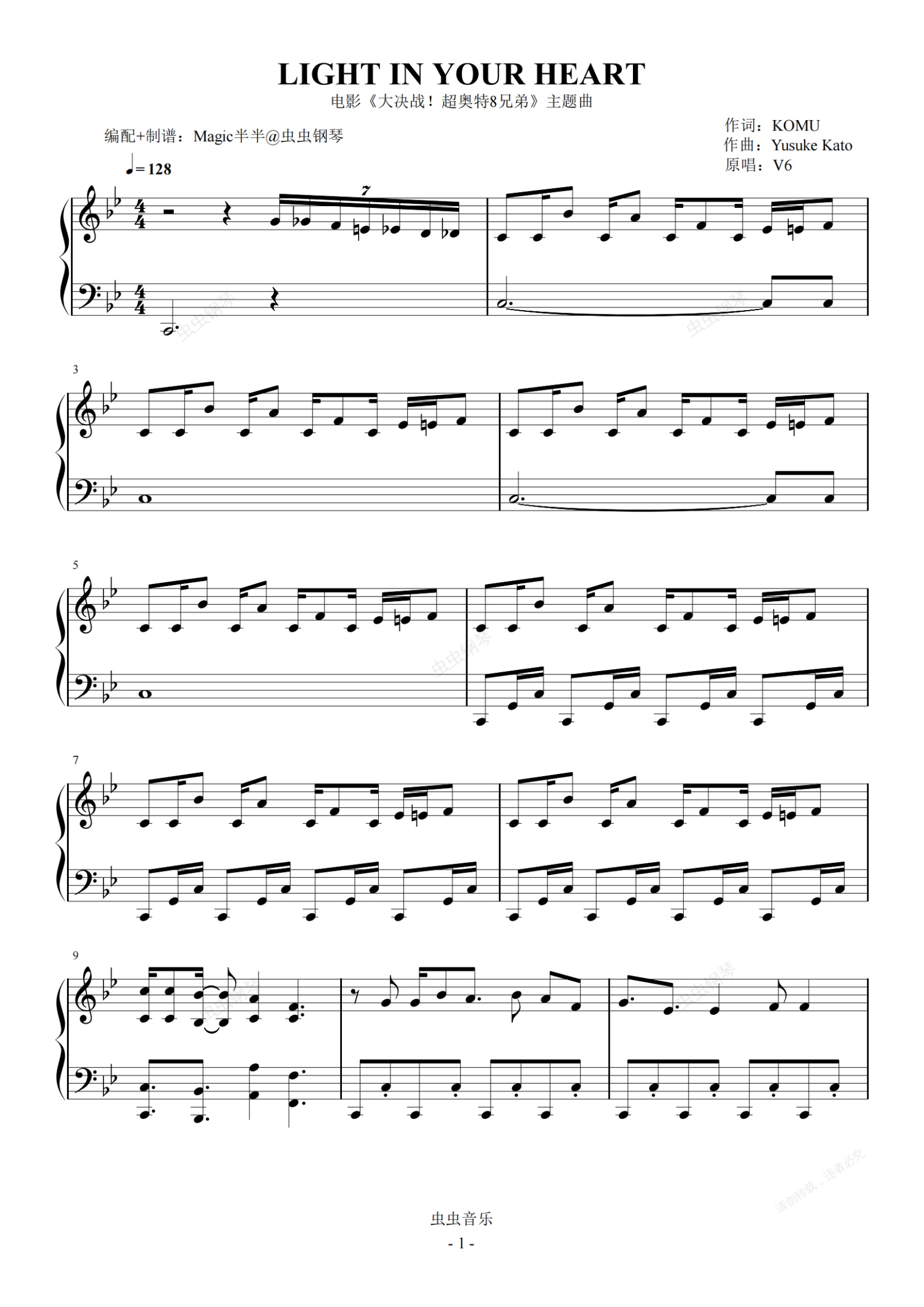 钢琴谱:LIGHT IN YOUR HEART <超奥特8兄弟>主题曲