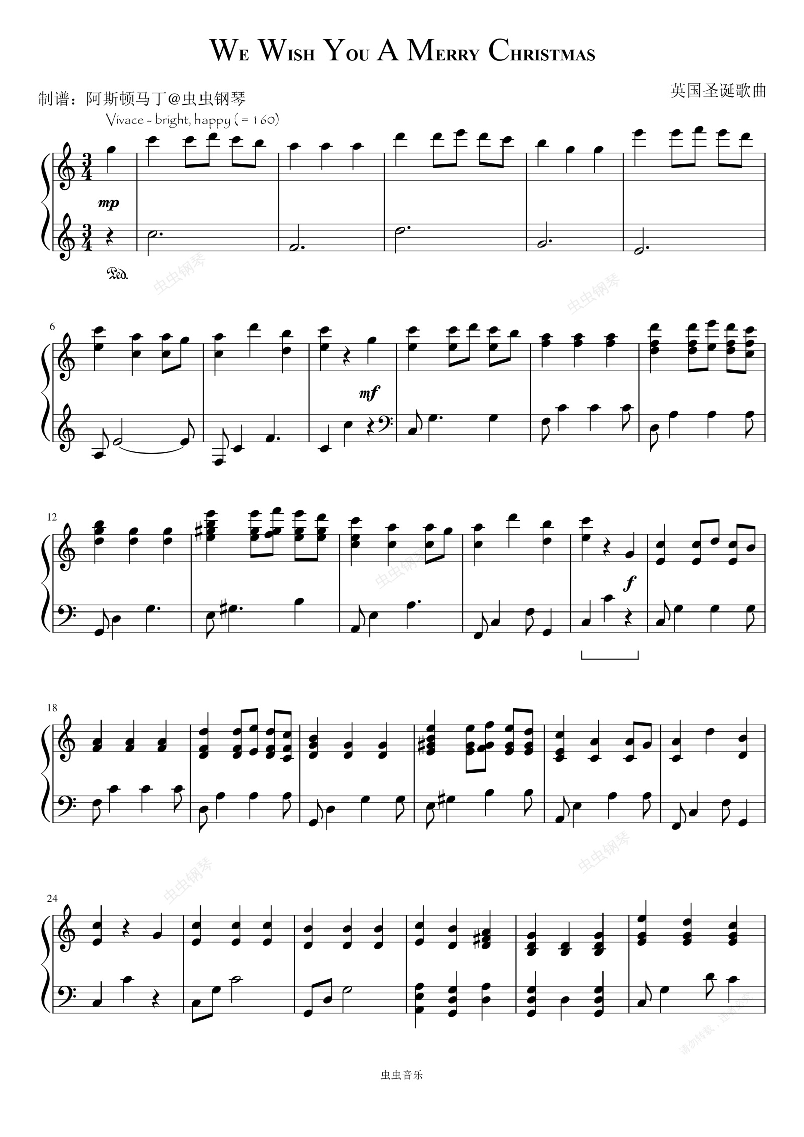 钢琴谱:We Wish You A Merry Christmas 我们祝你圣诞快乐 C调版