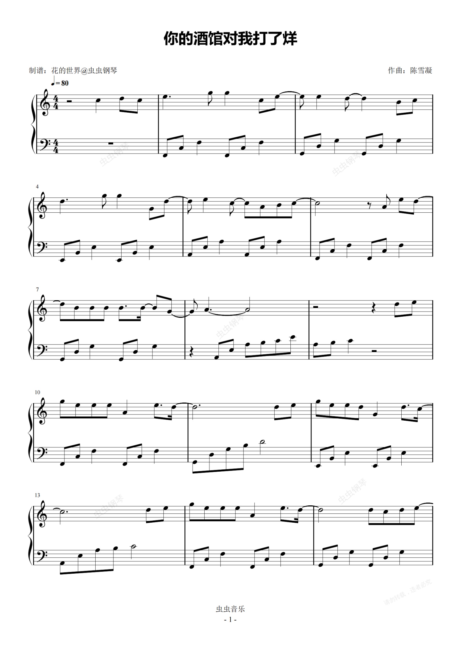 钢琴谱:你的酒馆对我打了烊 C调简易版 陈雪凝