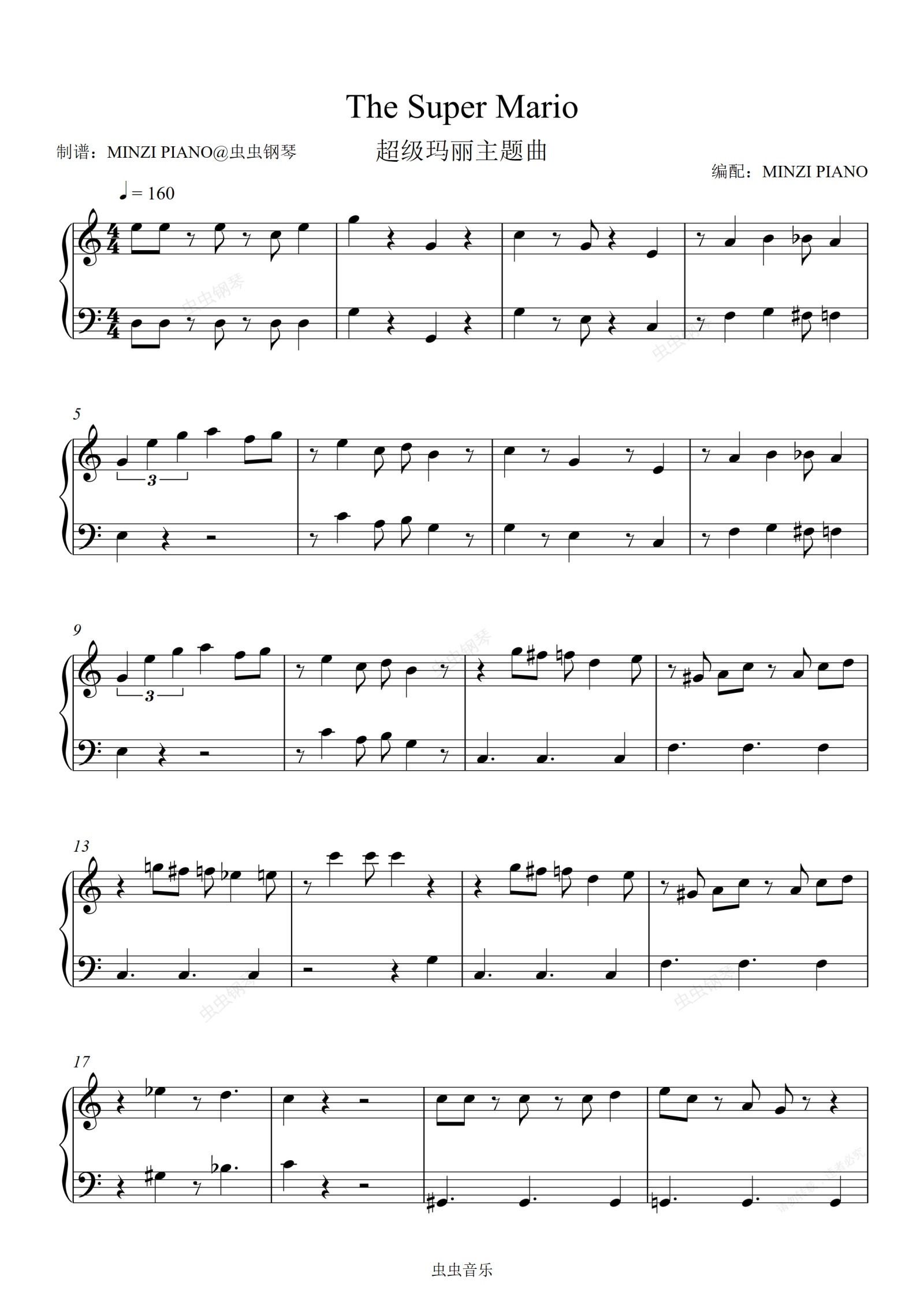 钢琴谱:The Super Mario -超级玛丽游戏主题曲