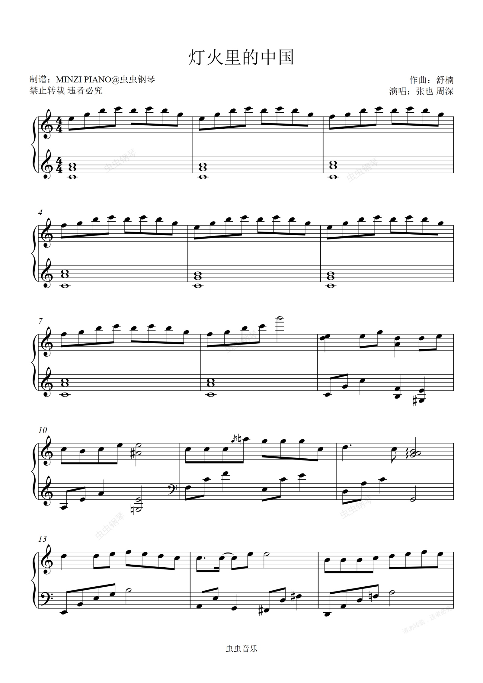 钢琴谱:灯火里的中国-张也 周深