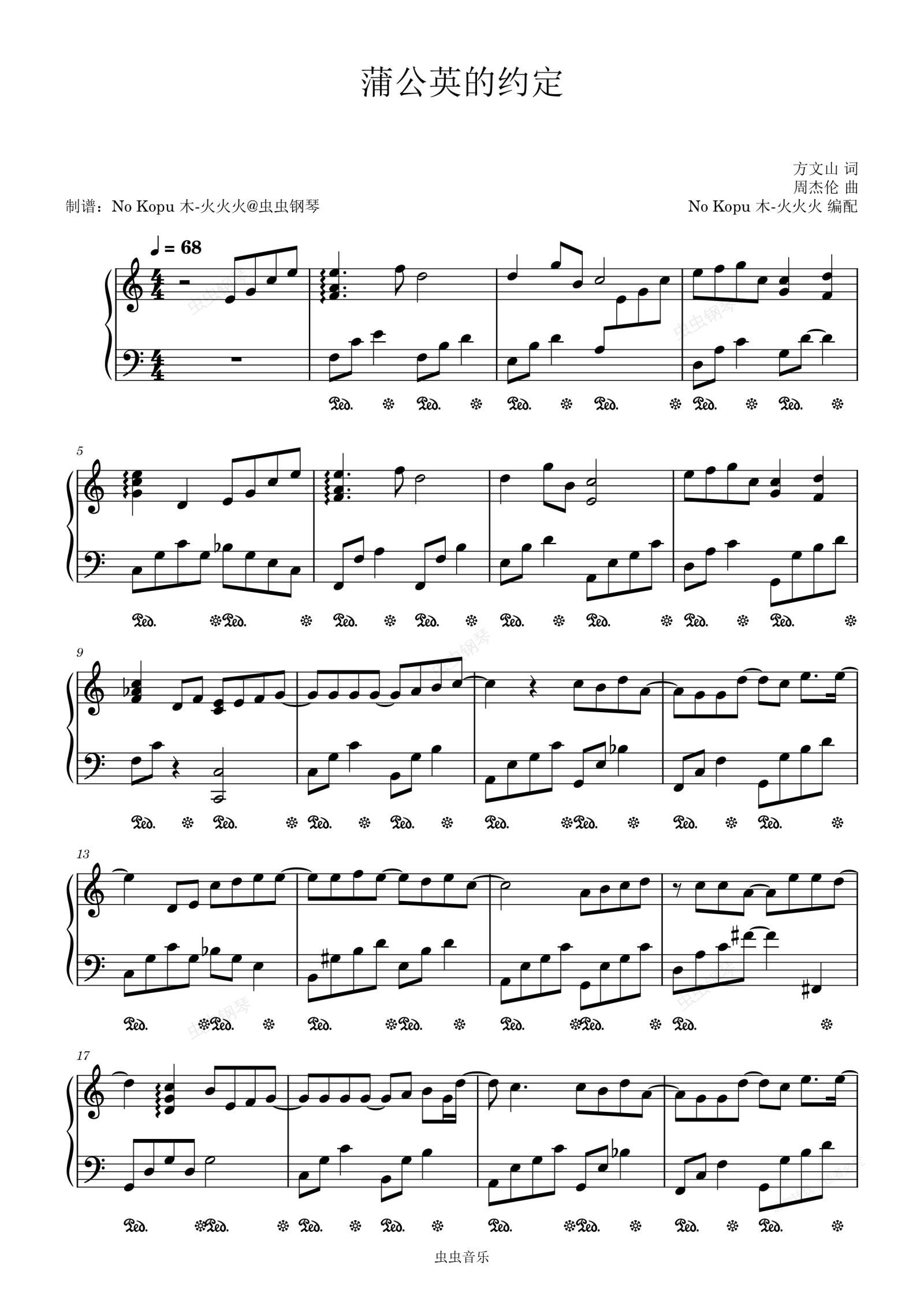 钢琴谱:简易好听《蒲公英的约定》原曲和弦
