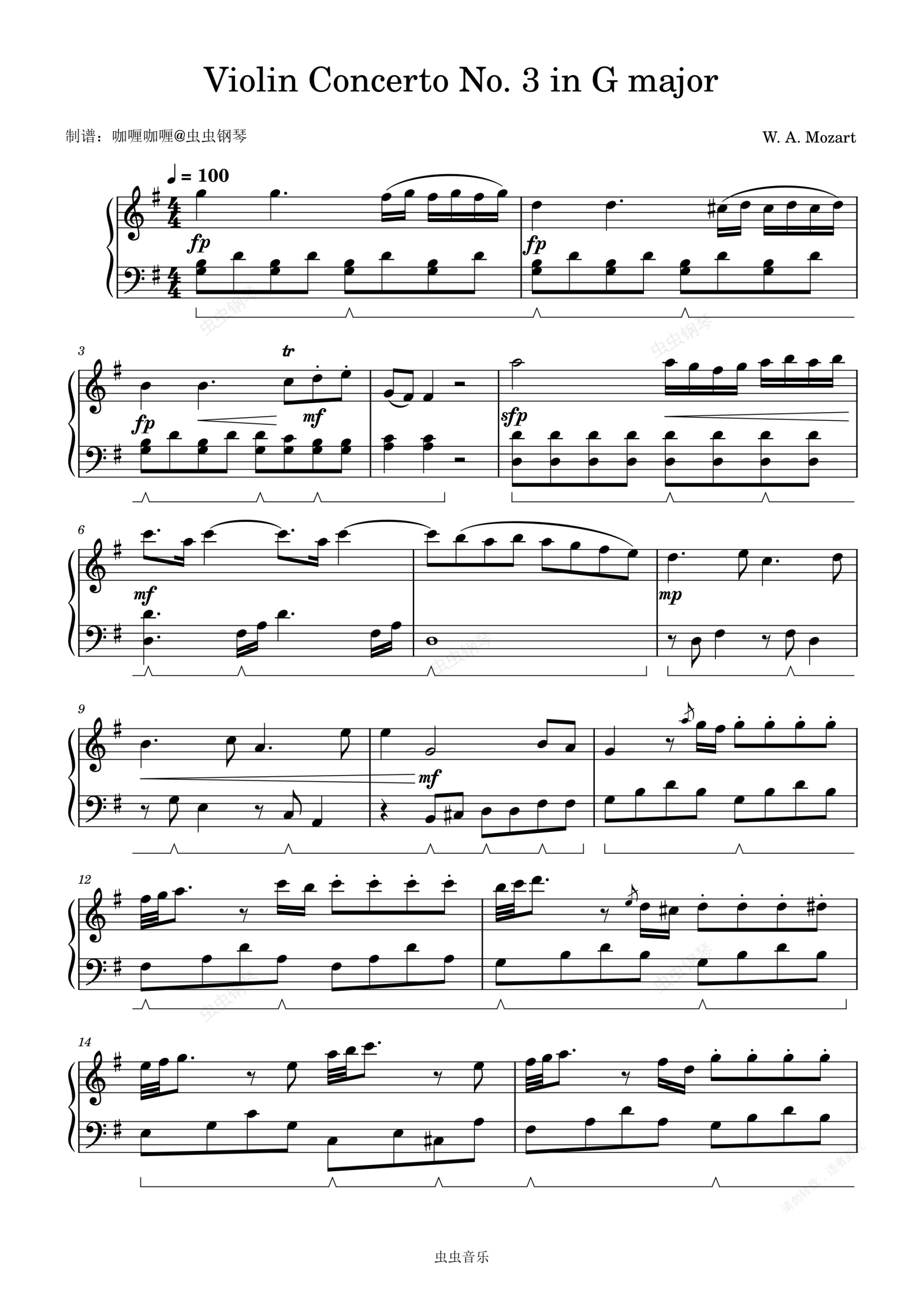 钢琴谱:G大调小提琴协奏曲 K.216(钢琴独奏版)