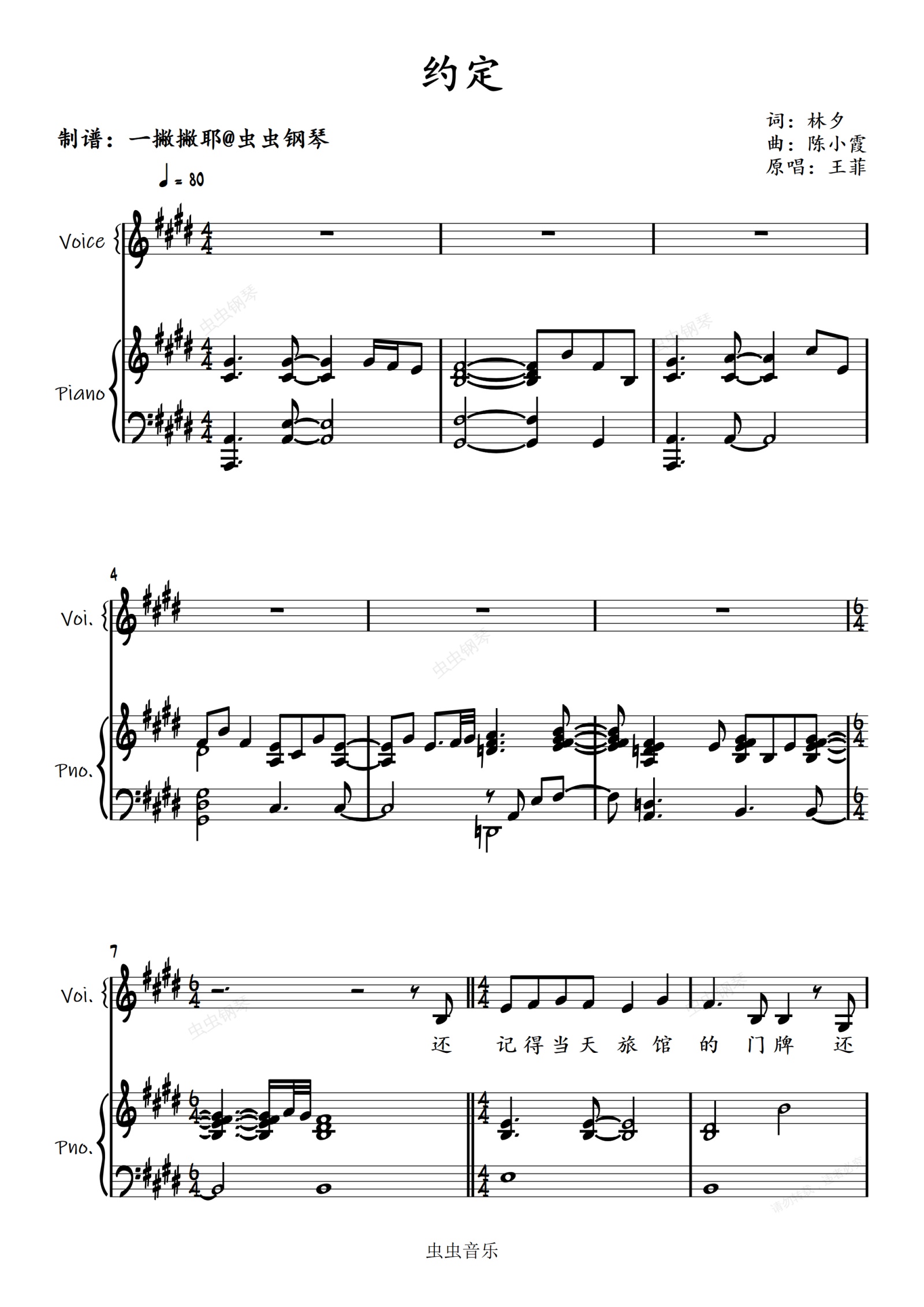钢琴谱:全网最还原弹唱《约定》王菲「一撇撇耶」