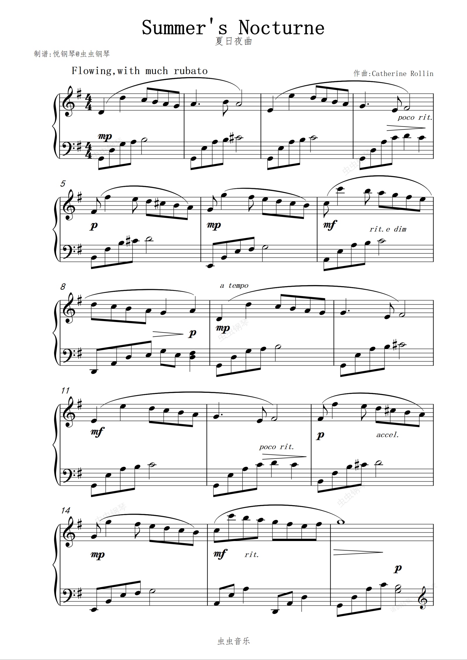 钢琴谱:夏日夜曲//summers nocturne【治愈钢琴小曲】
