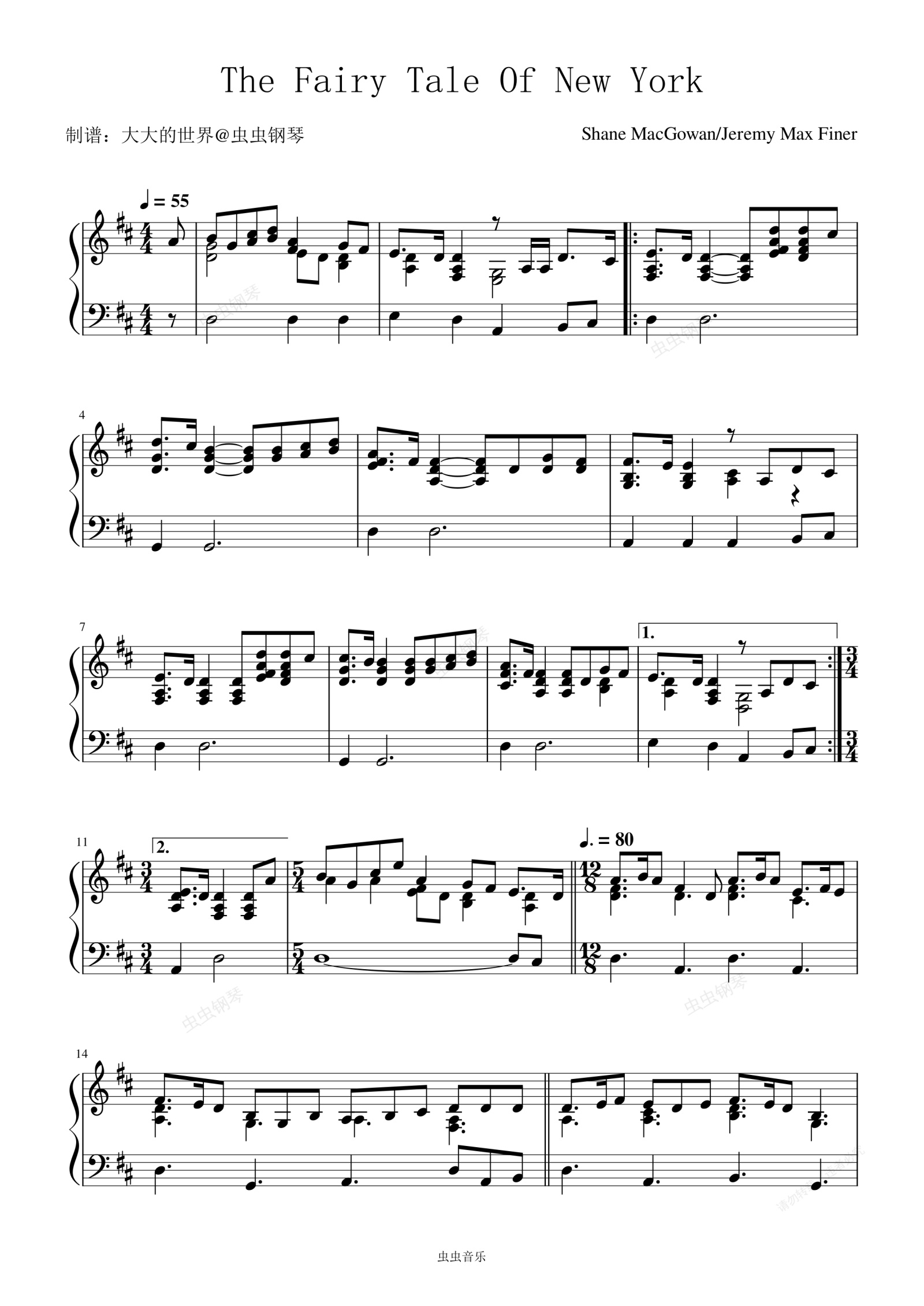 钢琴谱:Fairy Tale Of New York - Ronan Keating (罗南·基丁) 圣诞节快乐
