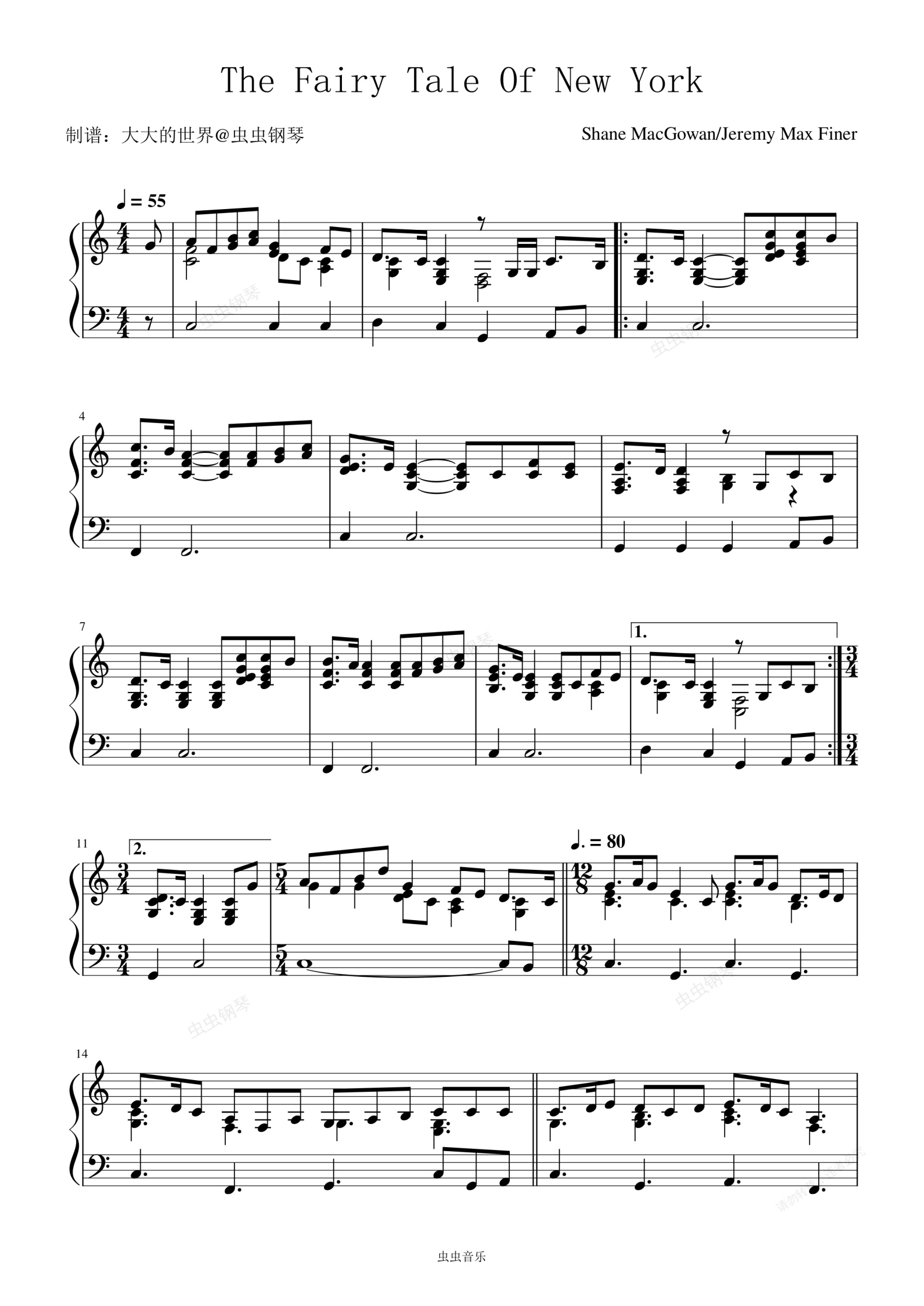 钢琴谱:Fairy Tale Of New York - Ronan Keating (罗南·基丁) 圣诞节快乐