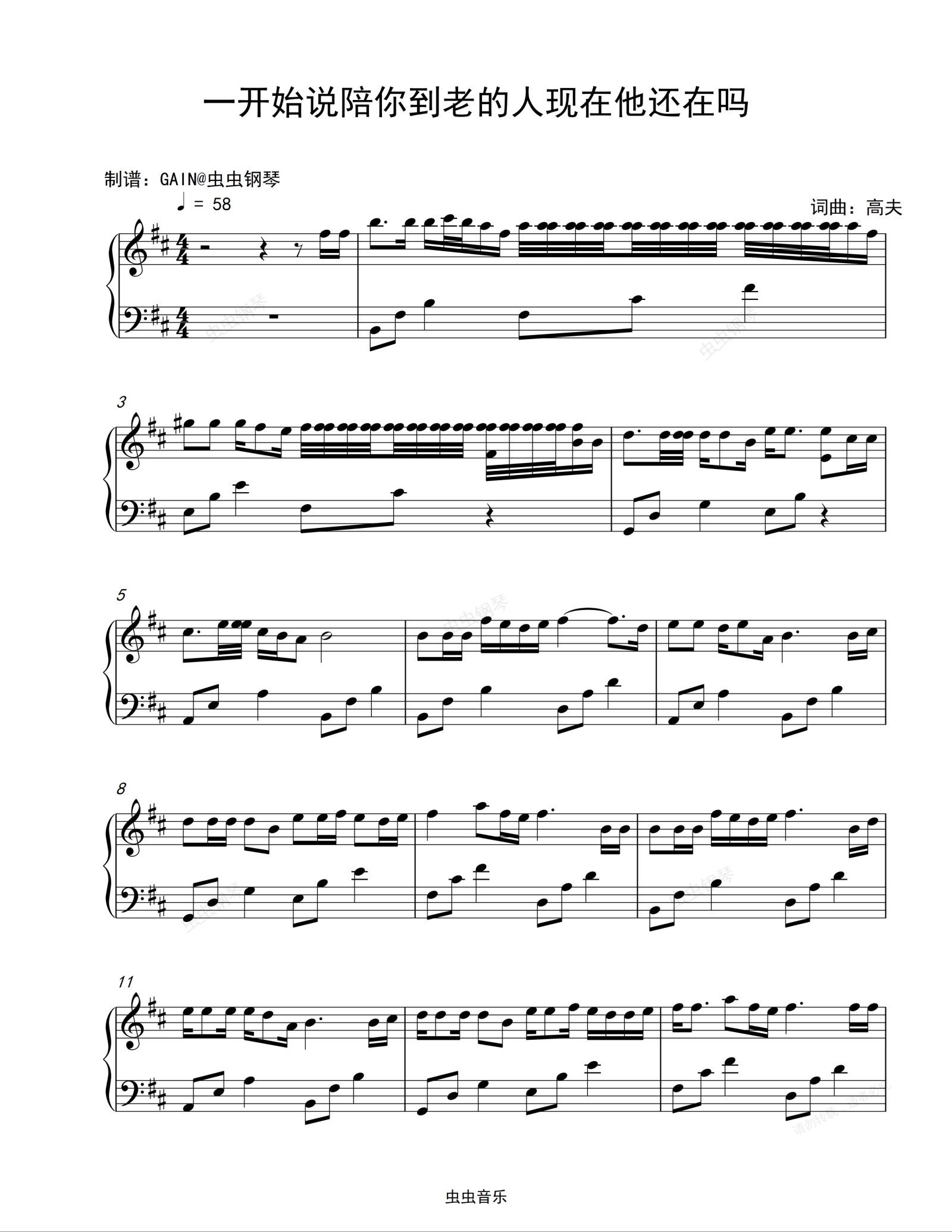 钢琴谱:一开始说陪你到老的人现在他还在吗-抖音热歌 -于洋