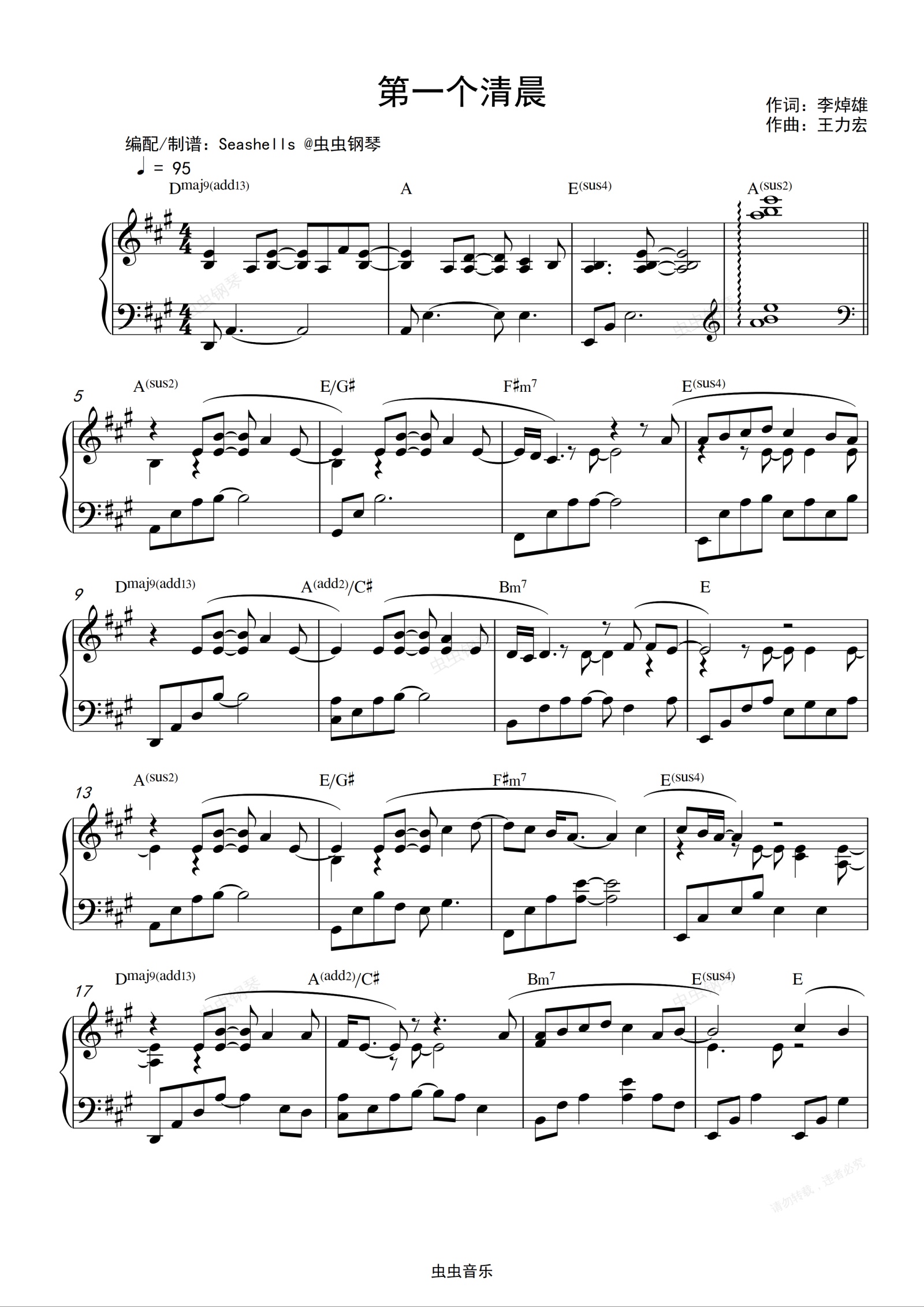 钢琴谱:王力宏-《第一个清晨》精编钢琴独奏