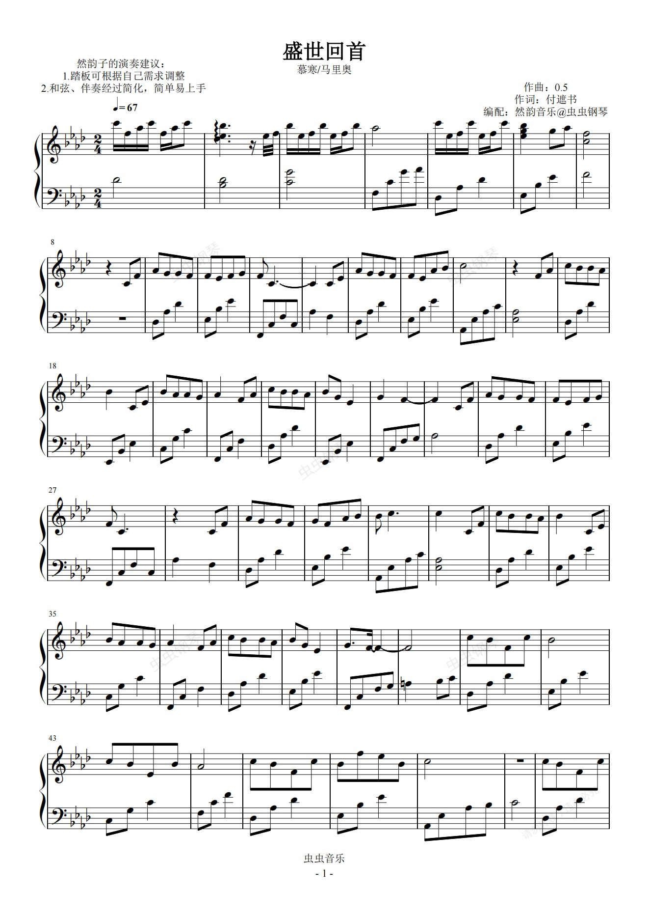 钢琴谱:【原调|完整版】盛世回首-慕寒/马里奥 简单易学版