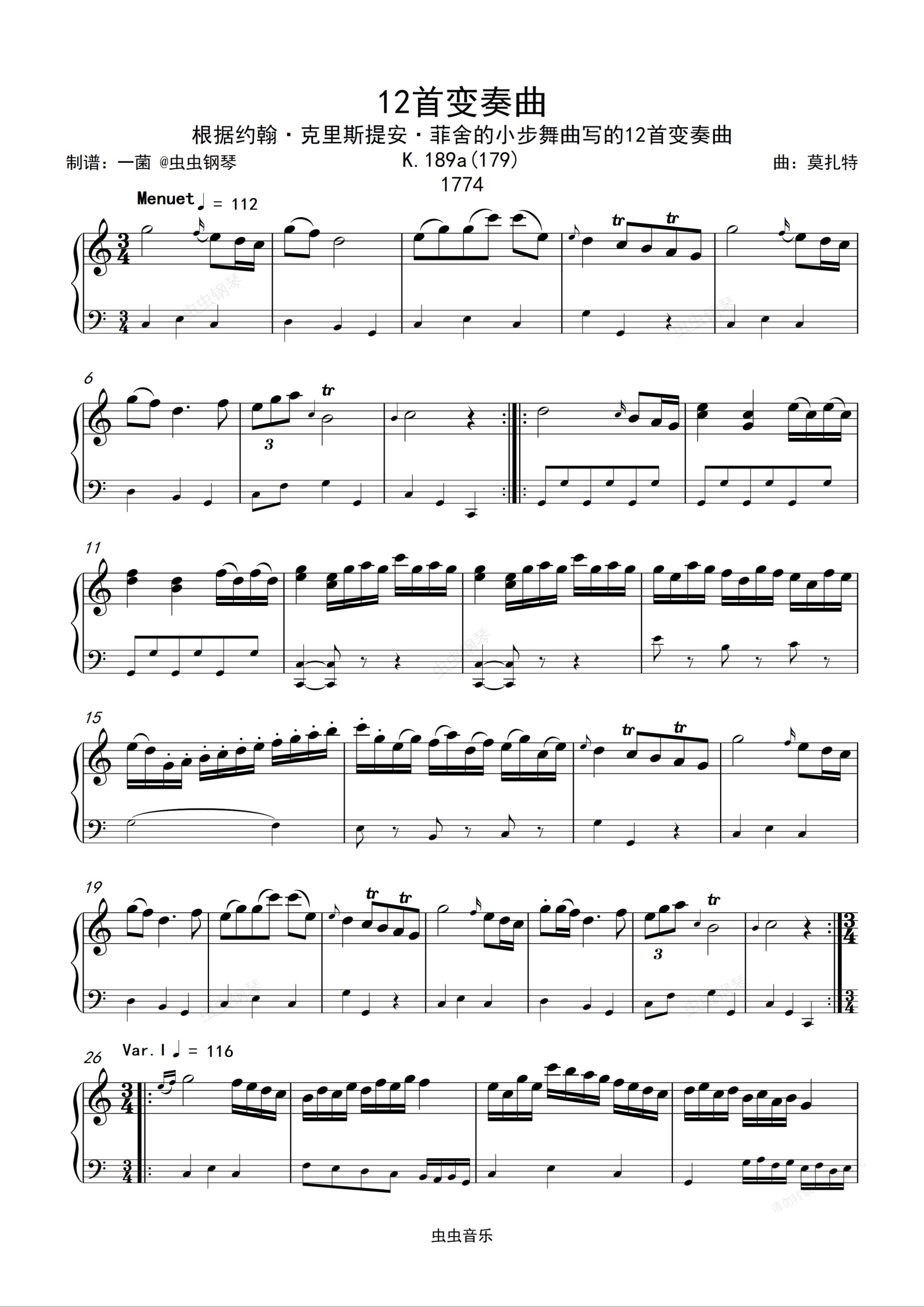 钢琴谱:莫扎特 K.179/KV179-菲舍的小步舞曲