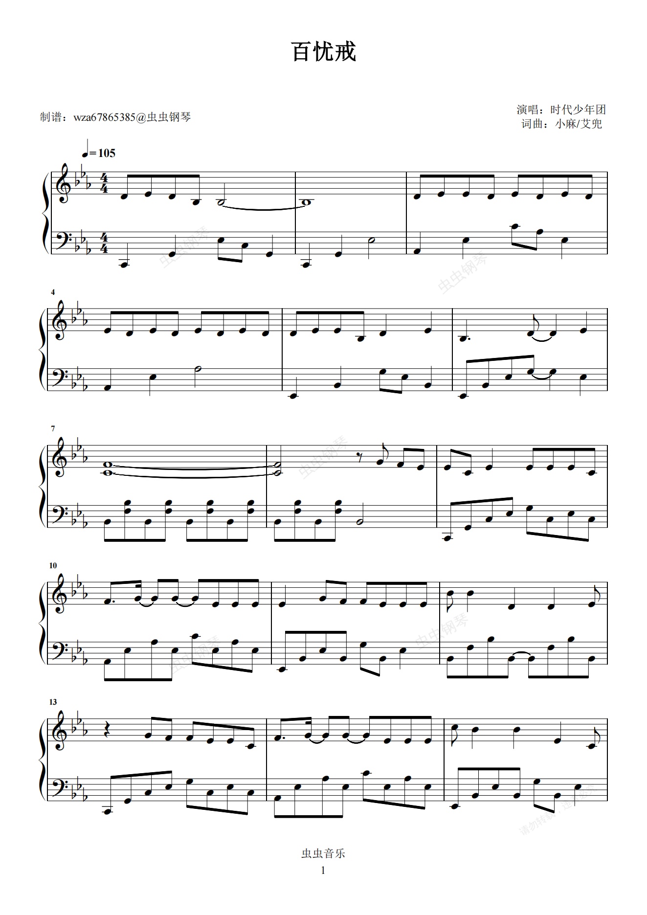 钢琴谱:百忧戒