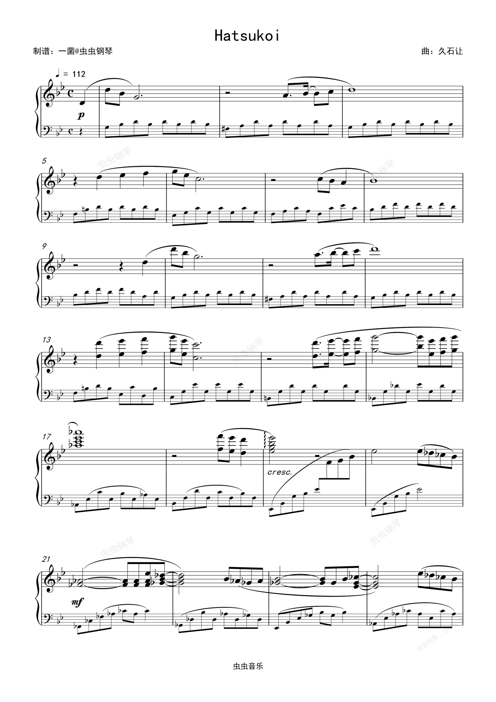 钢琴谱:Hatsukoi-久石让