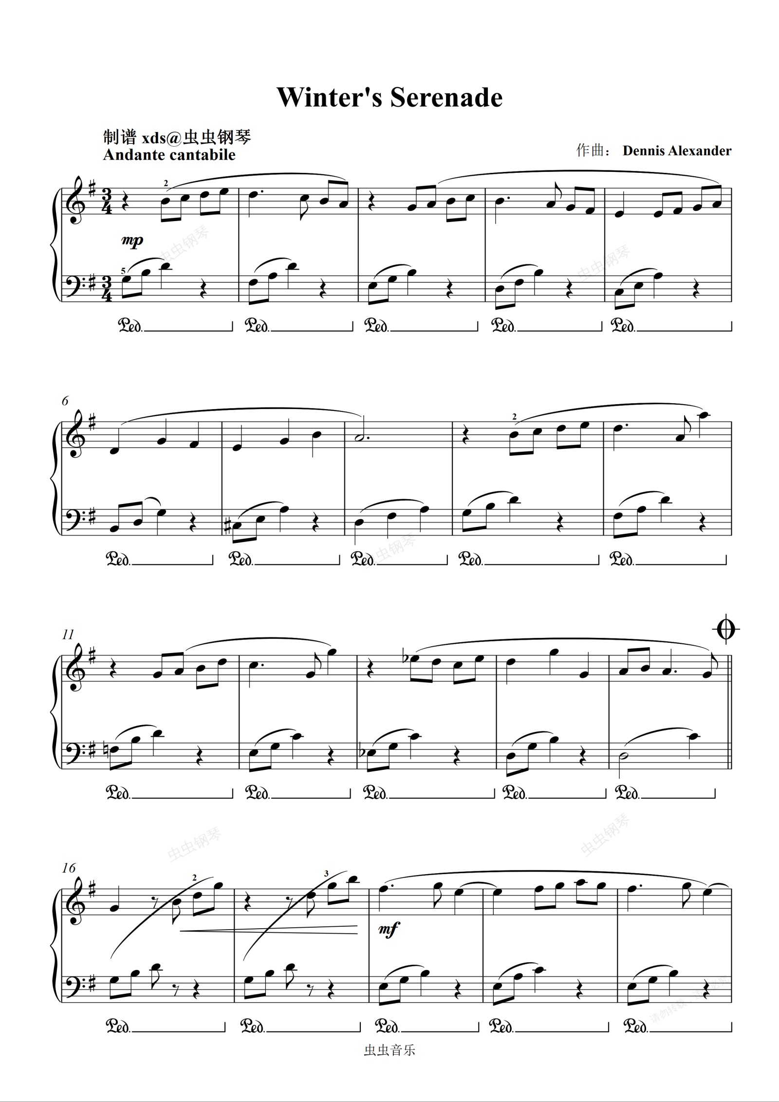钢琴谱:冬季小夜曲