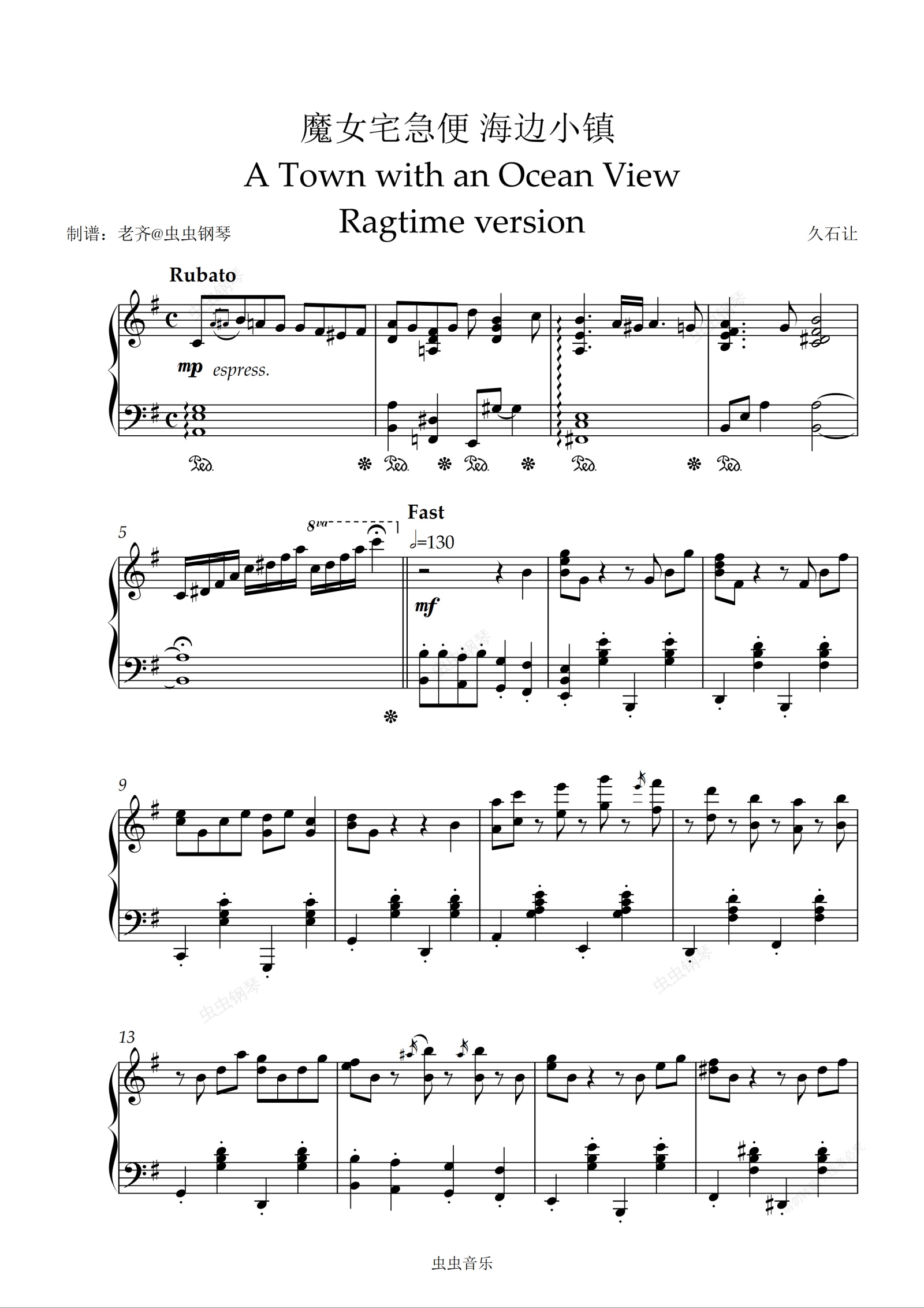 钢琴谱:【雷格泰姆】魔女宅急便《A Town with an Ocean View》
