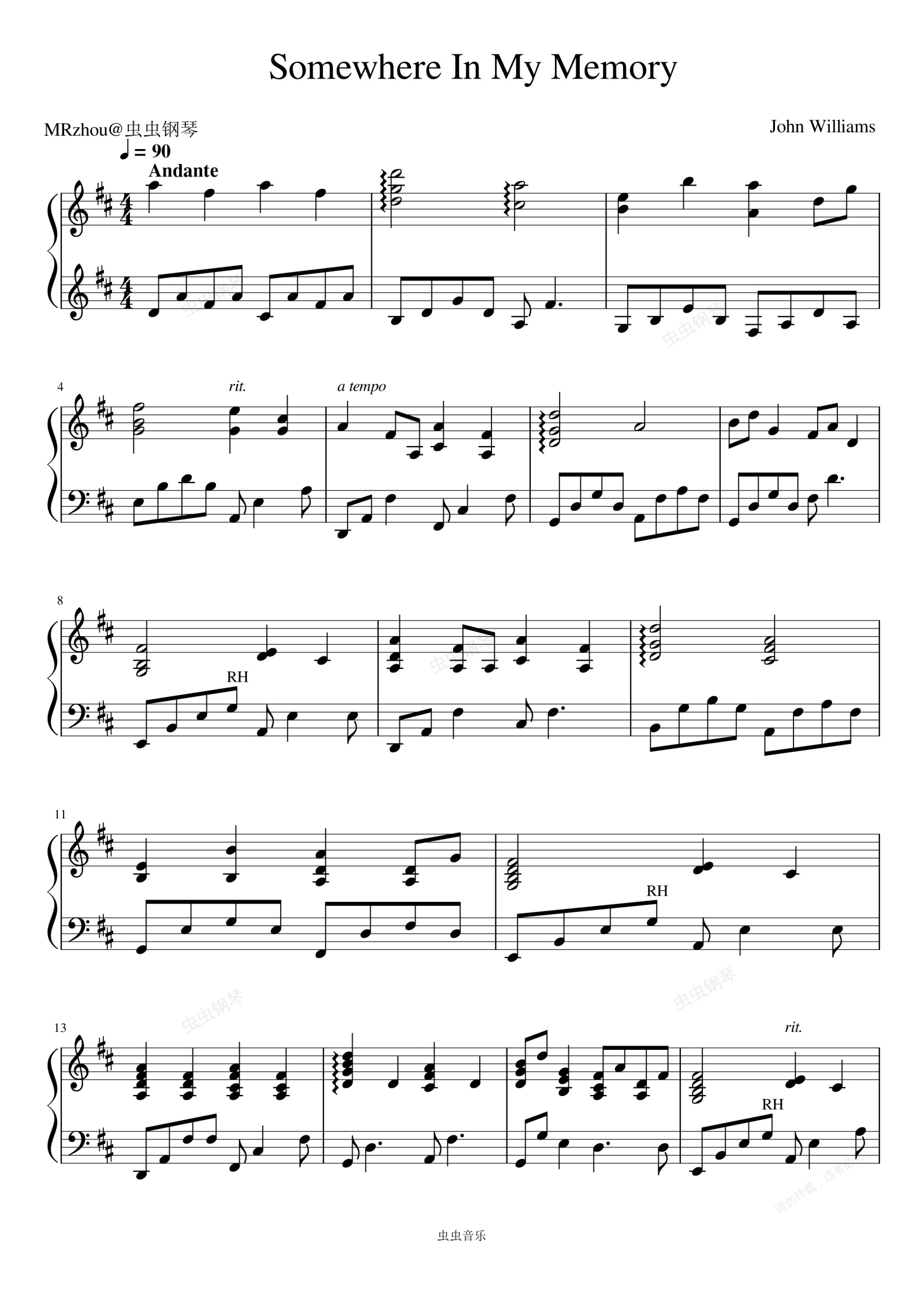 钢琴谱:Somewhere In My Memory - John Williams (约翰·威廉斯)